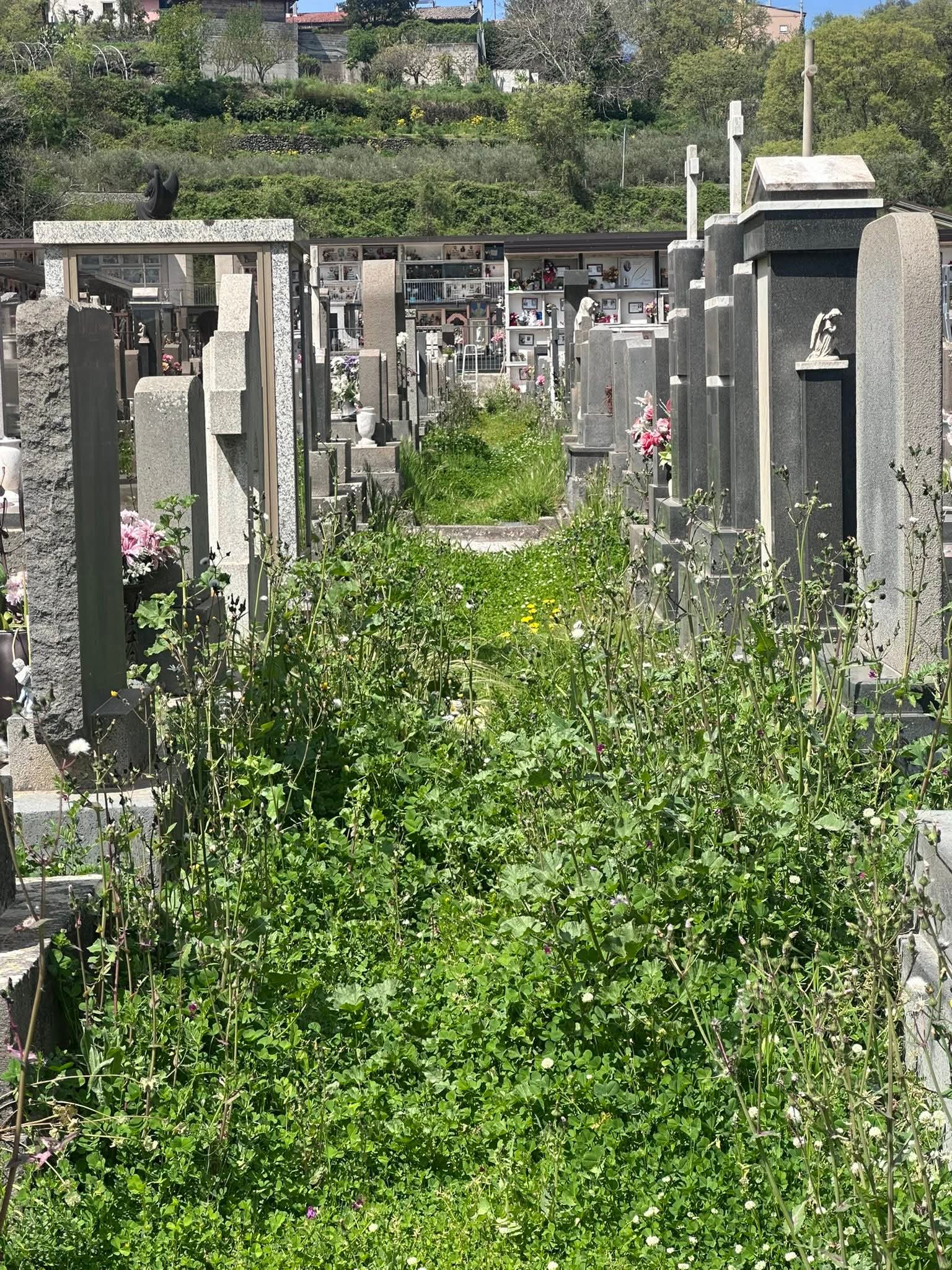 Mentre alle famiglie si chiede un esborso da capogiro, i vialetti del cimitero sono invasi da erbacce alte oltre un metro.  Muoversi tra le tombe è difficile, a tratti pericoloso, con il timore concreto di imbattersi in animali striscianti.