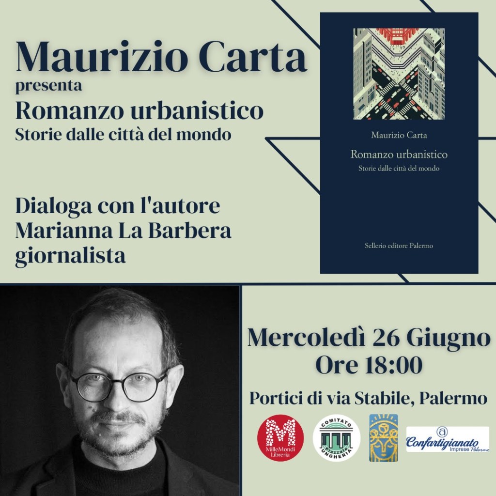 “Romanzo urbanistico. Storie dalle città del mondo” è il titolo del libro di Maurizio Carta che sarà presentato a Palermo mercoledì 26 giugno alle 18:00 ai portici di via Mariano Stabile.