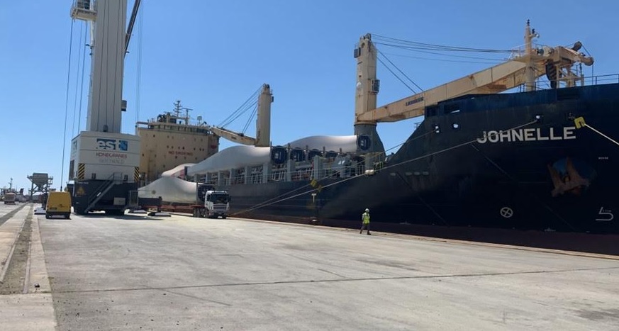Il cargo Johnelle ha scaricato al porto di Augusta 18 pale di turbine eoliche e relativo equipment (navicelle, generatori, sezioni di tronco ecc…), nell’ambito del programma di