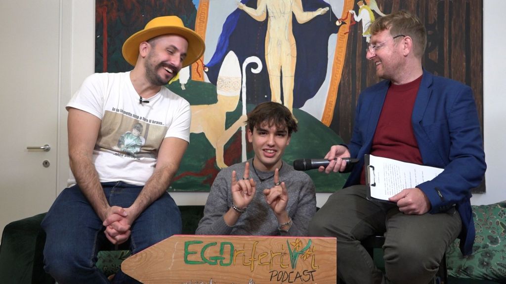 “Egoriferiti” è la conversazione tra un ospite e le sue due coscienze – rappresentate dal regista Giuseppe Cardinale e dal giornalista Vassily Sortino – alla ricerca del punto più sincero del proprio essere.
