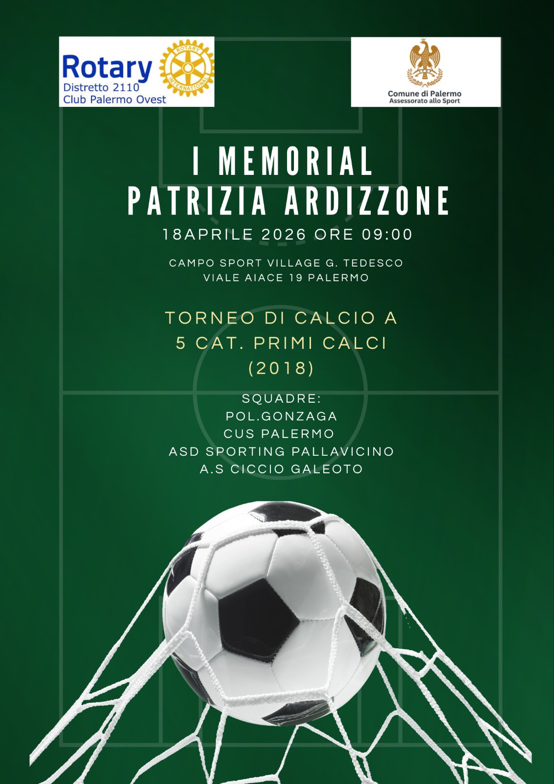 Sabato 18 aprile, presso il Campo Sport Village G. Tedesco, il ricordo ha preso vita attraverso un torneo di calcio a 5 categoria “Primi Calci” (2018). Protagonisti i più piccoli, custodi spontanei di valori come lealtà, amicizia e rispetto. In campo Pol. Gonzaga, Cus Palermo, ASD Sporting Pallavicino e A.S. Ciccio Galeoto, in una giornata che ha messo al centro non il risultato, ma la condivisione.