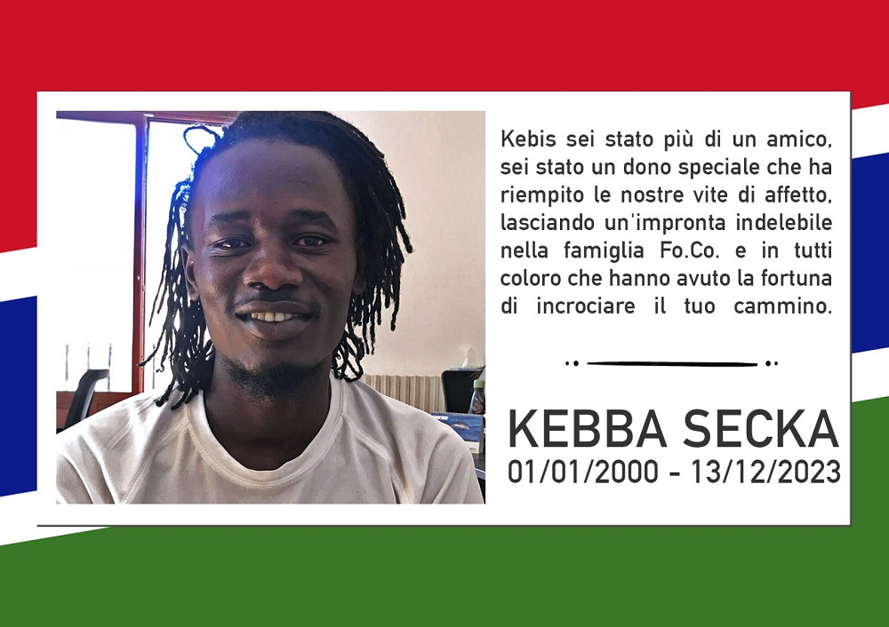 La raccolta fondi è stata promossa dalla cooperativa Fo.Co, dove il giovane era stato ospitato al momento del suo arrivo in Italia. Kebba (da tutti conosciuto con il diminutivo di Kebbis) era salito a bordo di uno dei tanti barconi. In Sicilia, e in particolare a Chiaramonte Gulfi, Kebba Secka era stato ospite dei progetti per richiedenti asilo della cooperativa Fo.Co. Aveva conseguito il diploma di scuola media inferiore e poi aveva continuato a collaborare con la cooperativa. Di recente, aveva preso in affitto una casa a Roccazzo, aveva acquistato la sua prima auto e prestava la sua opera come mediatore culturale nel centro di prima accoglienza contrada Cifali, gestito dalla Prefettura.