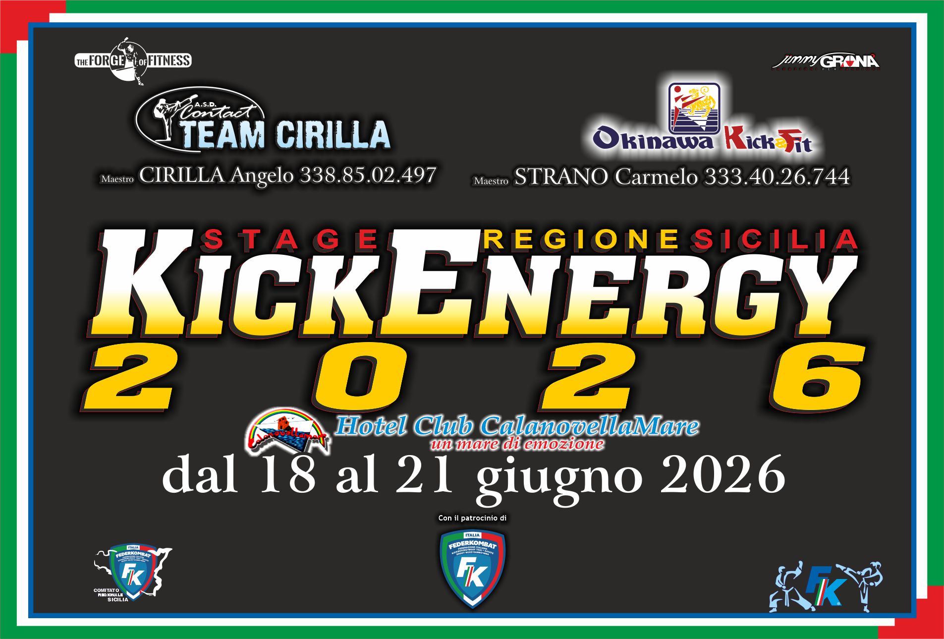 Tornati a casa più che soddisfatti i Fighter del Team Cirilla pensano al prossimo impegno di grande rilevanza qual è lo stage Regione Sicilia “KICK ENERGY” che si terrà al Hotel Club “CalanovellaMare” di Piraino (ME) dal 18 al 21 giugno 2026 dove sono attesi Grandissimi Maestri di fama internazionale.