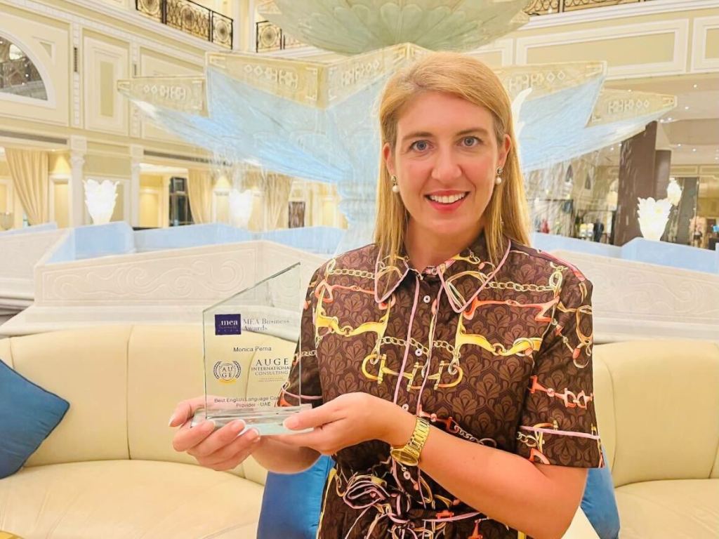 È qui che la Perna ha fondato AUGE International Consulting, l’impresa digitale che in soli tre anni è divenuta leader nel settore dell’E-learning registrando in tempi record circa 14.000 iscritti ed oltre 1 milione di utenti attivi. Ed è proprio nel suo quartier generale a Dubai che alla English Coach brianzola è stato consegnato il prestigioso premio proveniente direttamente dal Regno Unito. Aspetto non indifferente quest’ultimo, se si considera che la Perna è stata riconosciuta dai MEA Business Awards come miglior English Coach, grazie al suo ruolo nella divulgazione del Globish, la variante di inglese più parlata al mondo individuata da Jean Paul Nerrière e di cui la Perna, proprio da quest’ultimo, è stata nominata ufficiale rappresentante.