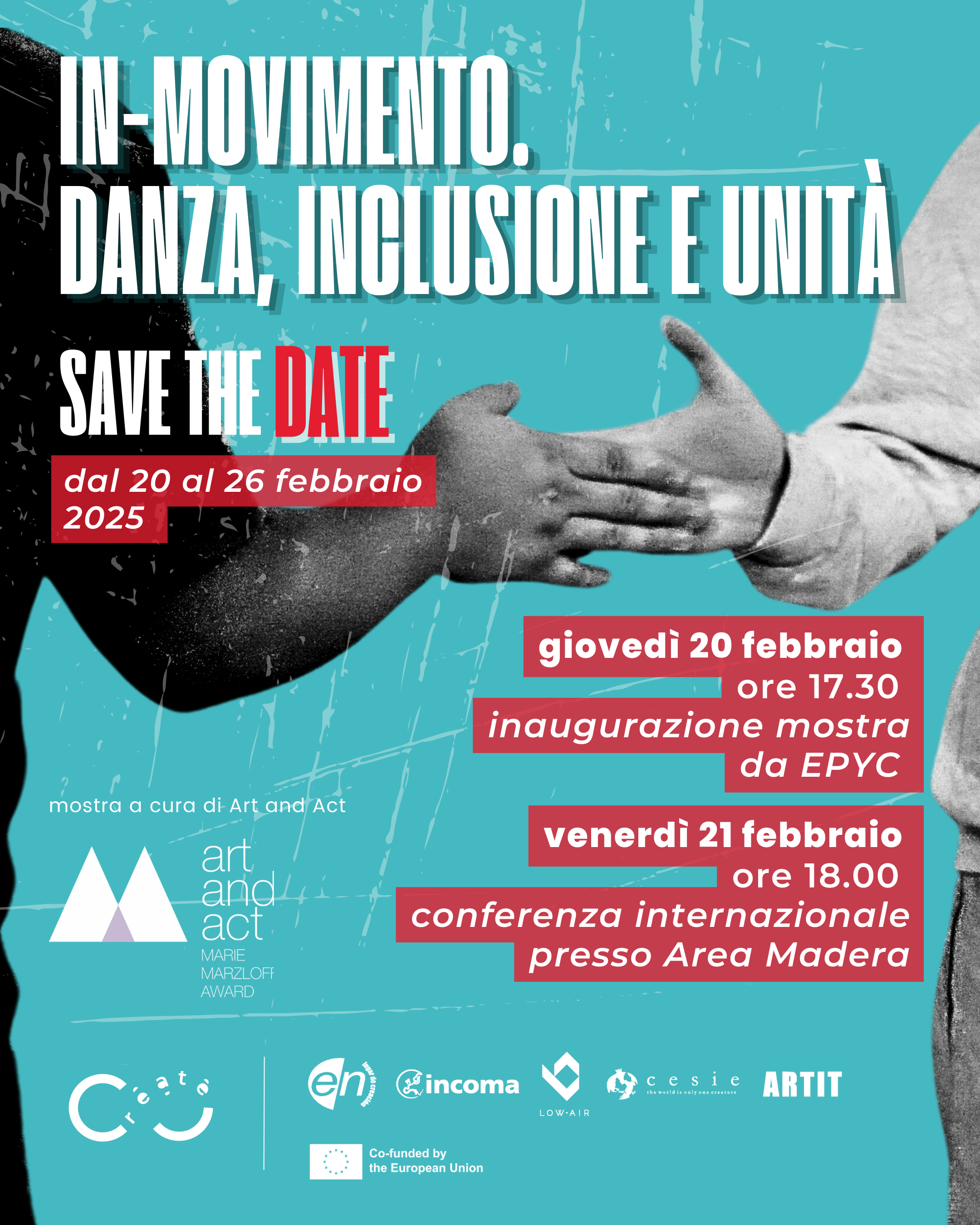 CREATE celebra la danza come linguaggio universale, capace di unire persone di ogni età e provenienza. Questa iniziativa valorizza la cultura come motore di coesione sociale, cittadinanza attiva e benessere, offrendo ad artisti e giovani provenienti da contesti svantaggiati pari opportunità per esprimersi, apprendere e crescere.