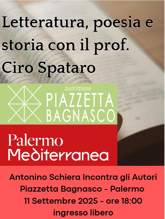 Pomeriggio dedicato alla storia, alla letteratura e alla poesia, alle 18 di giovedì 11 Settembre in piazzetta Bagnasco. Ad animarlo sarà lo scrittore Antonino Schiera, in dialogo con lo storico, scrittore e saggista, Ciro Spataro.
