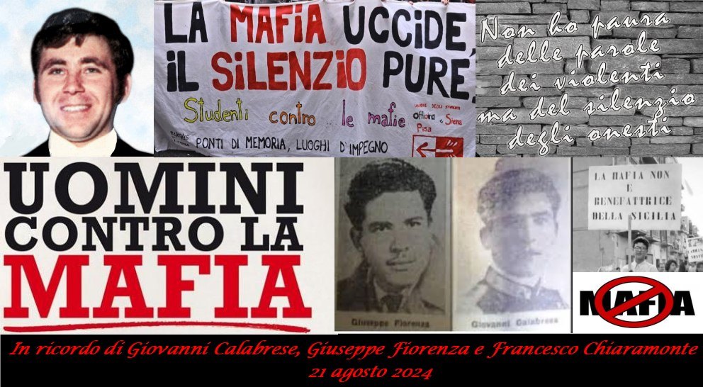 “Giovanni Calabrese e Giuseppe Fiorenza morirono il 21 agosto del 1949 a San Cipirello, in provincia di Palermo. I due erano dei giovanissimi carabinieri di 23 e 22 anni che, quella sera alle 21, stavano uscendo dalla caserma dopo aver fatto il solito giro di perlustrazione. Appena varcata la porta furono raggiunti da una raffica di mitra e bombe a mano che uccisero Fiorenza sul colpo e causarono gravissime ferite a Calabrese, che morì all’alba in ospedale. Pochissimi mesi dopo vennero individuati esecutori e mandanti, provenienti dalla banda di Salvatore Giuliano, i quali sicuramente avranno scontato anni di carcere…insomma saranno stati puniti per quello che hanno fatto, ma ciò non toglie che Giovanni e Giuseppe hanno perso la vita giovanissimi senza avere nessuna colpa se non quella di essere “sbirri”, come li chiamano i delinquenti. E magari loro per diventare “sbirri” chissà quante rinunce avevano fatto. Magari sognavano di diventare “sbirri” da quando erano piccoli per mettere fine alla delinquenza. Invece era stata la delinquenza a mettere fine alla loro brevissima vita in modo accuratamente premeditato, organizzato e terribilmente spietato. E come loro hanno perso la vita migliaia di innocenti. Quello che possiamo fare noi però non è solo ricordare e sperare che queste cose non accadano più, noi abbiamo il diritto di vivere in una società onesta e corretta, ma per ottenere ciò abbiamo il dovere di lottare contro la criminalità organizzata, il dovere di dire basta all’omertà trovando il coraggio di denunciare ogni estorsione, ricatto, violenza difendendo, così come hanno fatto le infinite vittime innocenti di mafia, la legalità.”(Linda Ligorio)
