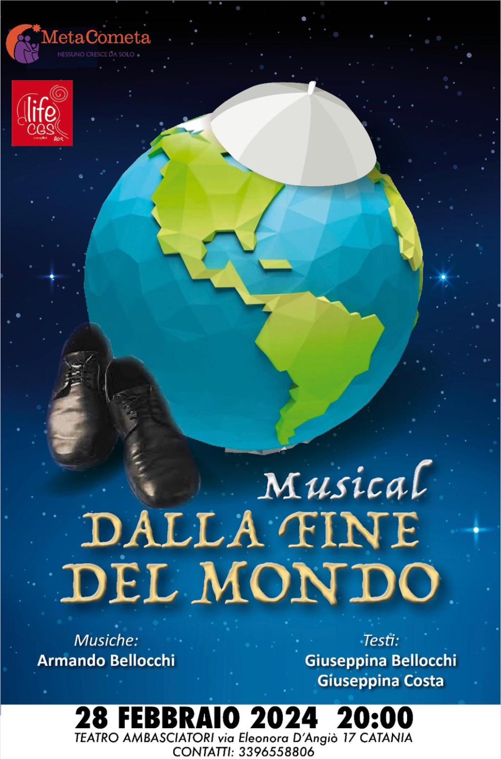 Catania – Mercoledì 28 febbraio con inizio alle ore 20, presso il teatro Ambasciatori di Catania (Via Eleonora DìAngiò, 17), andrà in scena il musical “Dalla fine del mondo”, scritto da Giuseppina Bellocchi e Giuseppina Costa con le musiche di Armando Bellocchi e messo in scena dal CGS Life APS di Biancavilla.