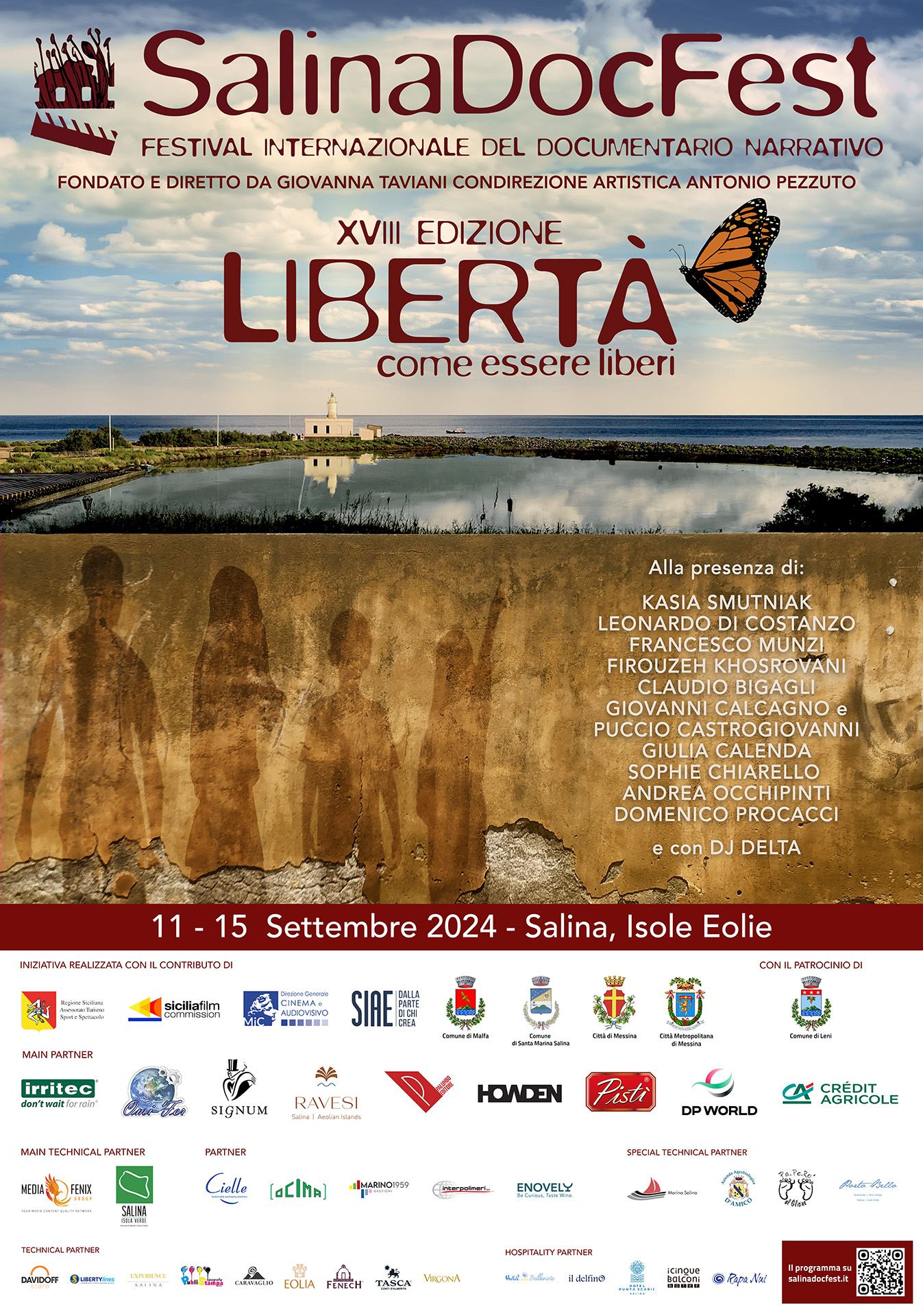 La XVIII edizione del SalinaDocFest è in programma a Salina nelle Isole Eolie dall’11 al 15 settembre. Il tema scelto per i 18 anni del Festival è Libertà – Come esseri liberi. Queste le parole di Giovanna Taviani fondatrice e direttrice artistica del SalinaDocFest, quest’anno con la condirezione artistica di Antonio Pezzuto: “Libertà è il tema che porta il SalinaDocFest alla sua maggiore età: 18 anni del Festival del documentario a Salina, l’isola della Panaria Film. Ci sembra questo il modo migliore per festeggiare un Festival che ha sempre tratto ispirazione da uno sguardo attento sulla realtà che ci circonda. Oggi, che l’Europa è assediata dallo spettro di una nuova barbarie, che l’Occidente si sta balcanizzando sotto nuove ondate di xenofobia, odio etnico e politiche di estrema destra; che l’identità di genere si fa fluida e sempre più oltre i confini, ci sembra giusto interrogarci sul tema Libertà e provare a rispondere a un interrogativo che sentiamo doveroso e urgente: come essere liberi. Donne e Libertà, Muri e Libertà, Giovani e Libertà senza dimenticare la Scuola. Sono questi gli assi attorno a cui si muovono i film selezionati che affrontano da angolazioni diverse il tema nelle sue diverse accezioni: libertà di scelta, di pensiero, di credo, di genere, di abolizione di confini, fisici e mentali”.