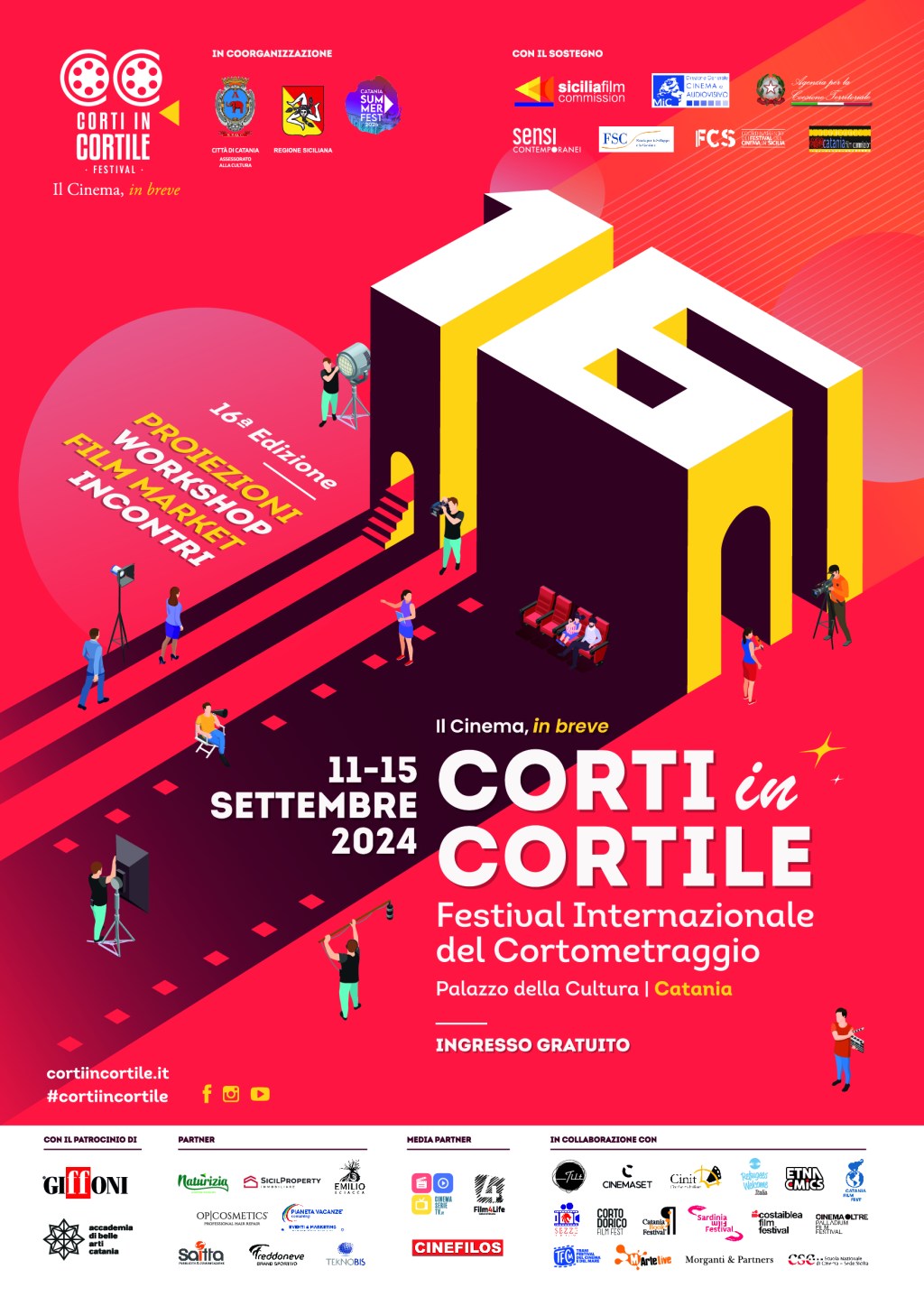 Dall’11 al 15 settembre, al Palazzo della Cultura di Catania, torna il Festival internazionale del cortometraggio, Corti in Cortile, il Cinema in breve. Numerosi i corti in concorso provenienti da tutto il mondo, giudicati da una giuria di esperti, ma anche laboratori, masterclass e il Film Market, il primo networking per gli operatori dell’industria del cinema del Sud Italia. Queste le parole di Davide Catalano, fondatore e direttore artistico del festival: “Siamo entusiasti di annunciare la nuova edizione di Corti in Cortile, un festival che continua a crescere e a rinnovarsi anno dopo anno. Questa edizione si preannuncia particolarmente ricca di sorprese, con una selezione di cortometraggi provenienti da tutto il mondo, che sapranno emozionare, far riflettere e intrattenere il nostro pubblico. Abbiamo lavorato con passione per creare un programma che non solo valorizzi il talento dei registi emergenti, ma che offra anche spazi di confronto e approfondimento su temi di grande attualità. Corti in Cortile è una festa del cinema breve, un’occasione unica per scoprire storie che spesso non trovano spazio nei circuiti tradizionali, ma che meritano di essere raccontate. Vi aspettiamo per condividere insieme questa esperienza culturale straordinaria”.