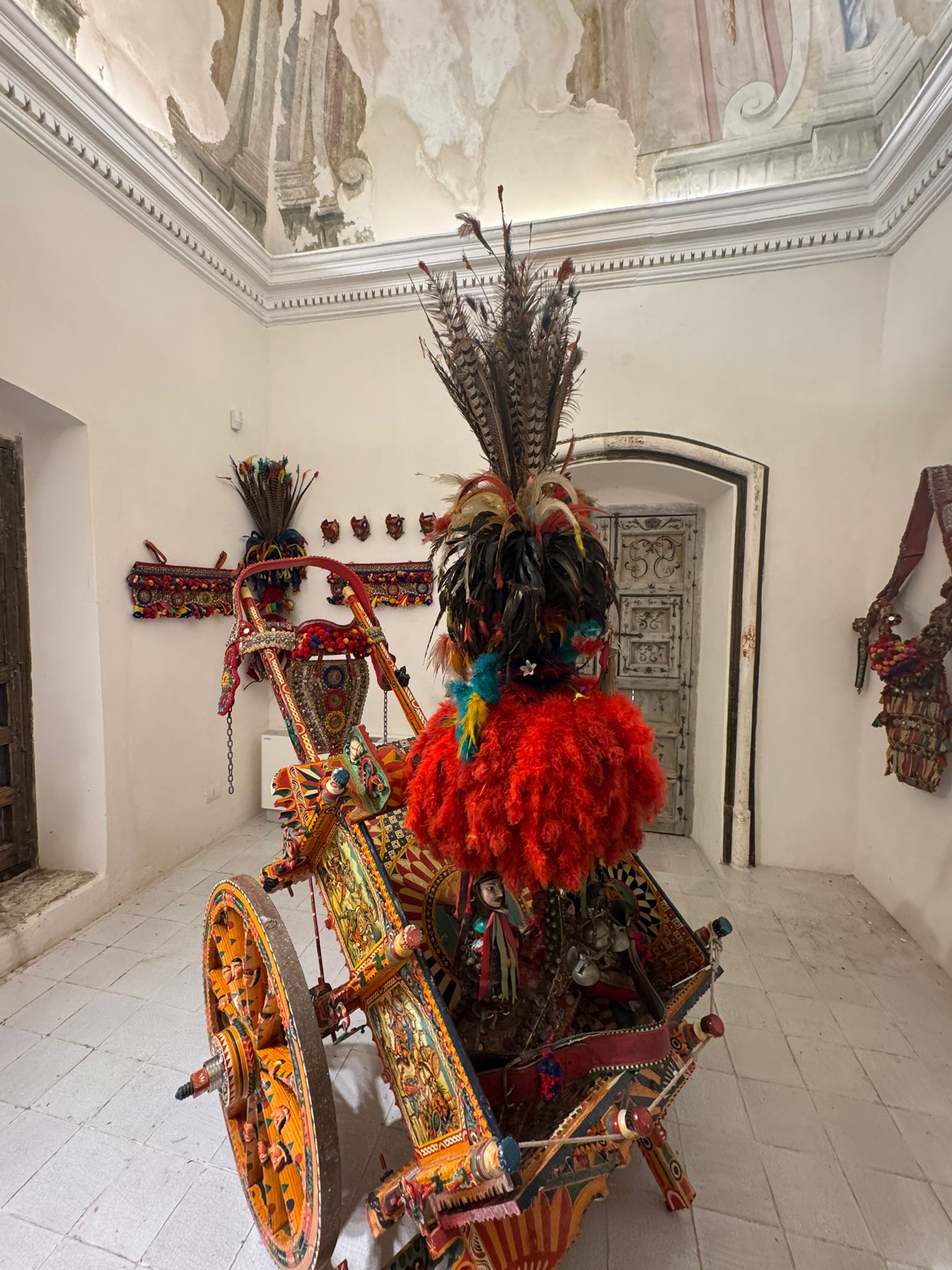 Il museo offre un percorso filologico che presenta carretti completi, pupi armati, casse di fuso, elementi decorativi e bardature originali, realizzati da maestri costruttori provenienti da diverse aree della Sicilia. I visitatori sono guidati da un apparato descrittivo bilingue che interpreta non solo l’opera artigianale, ma il suo ruolo storico nella trasmissione orale dei racconti epici, delle devozioni popolari e dell’immaginario collettivo siciliano.