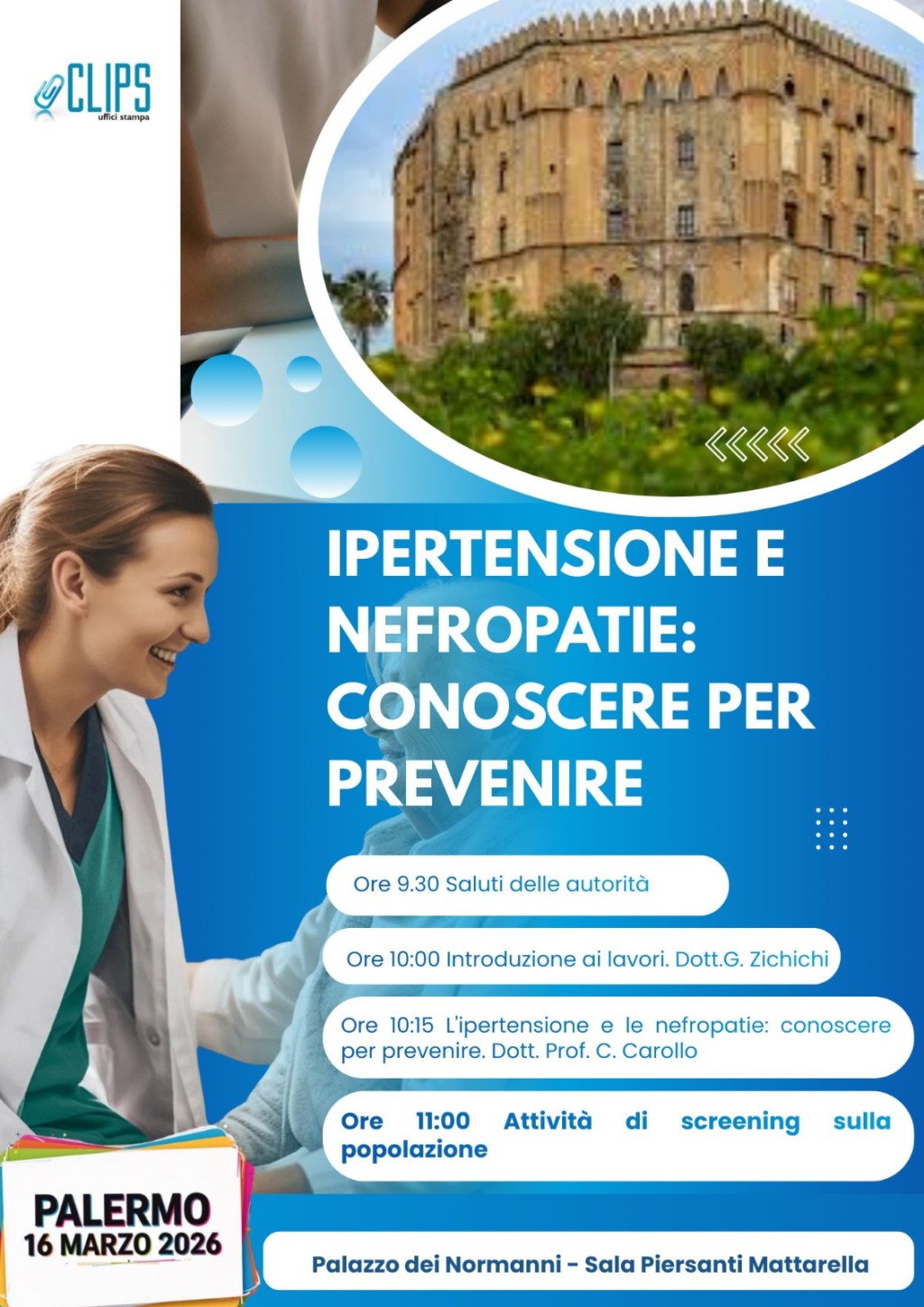 l 16 marzo al Palazzo dei Normanni un’iniziativa del Dipartimento di Nefrocardiologia del Policlinico di Palermo per sensibilizzare i cittadini su ipertensione e nefropatie e promuovere la diagnosi precoce.