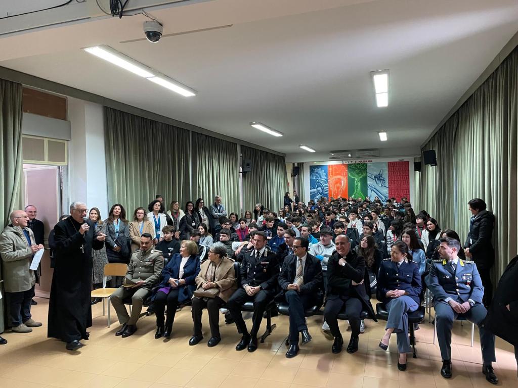Ad accogliere Mons. Accolla il Dirigente Scolastico, prof. Bruno Lorenzo Castrovinci, i docenti di religione dell’istituto e i comandanti e ufficiali delle forze dell’ordine del territorio, in un’aula gremita di giovani studenti del biennio in rappresentanza di tutti i loro compagni per una mattinata densa di emozioni.