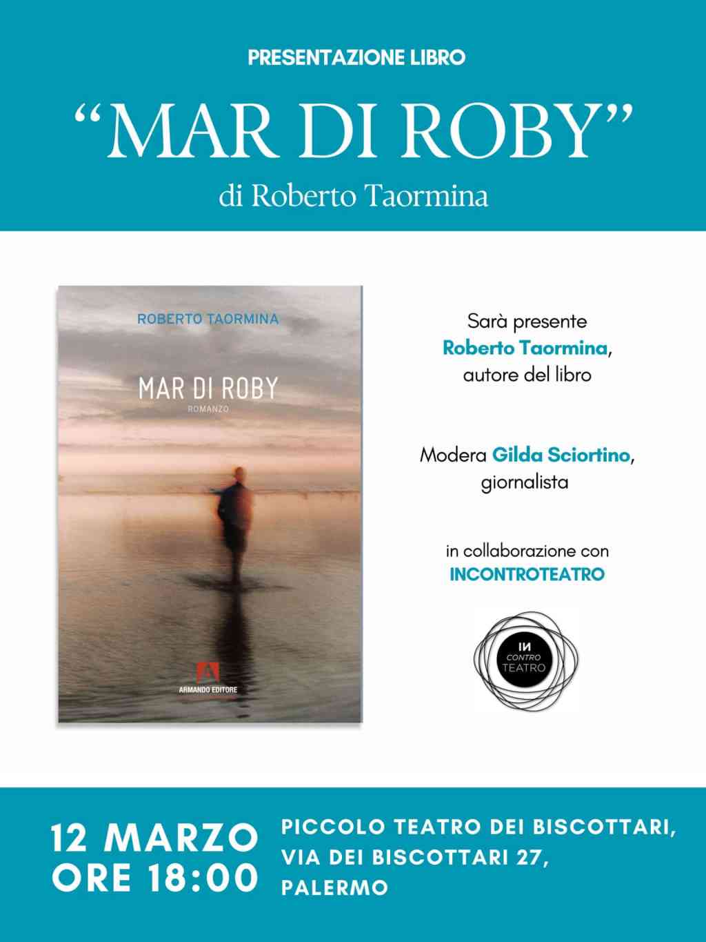 Una storia che tra autobiografia e narrazione ci regala un viaggio personale tra le pieghe della vita come fossero onde del mare. Sarà presentato alle 18 di mercoledì 13 marzo, al Piccolo Teatro dei Biscottari, “Mar di Roby” (Armando editore). A dialogare con l’autore sarà la giornalista Gilda Sciortino.