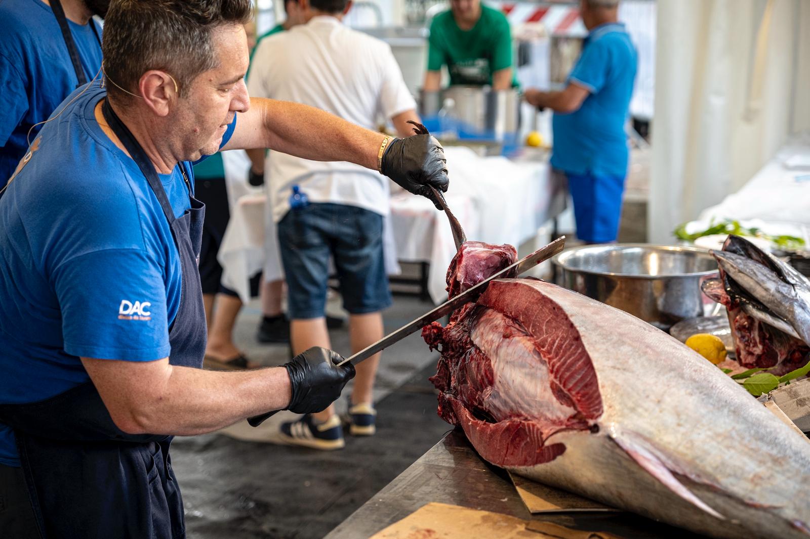Gli spettatori e poi degustatori hanno risposto con curiosità ed estrema partecipazione (e non era per nulla scontato, viste le temperature roventi). Tra docenti accademici e divulgatori dall’argomento pesca alla blue economy e professioni legate (pescaturismo ed energie rinnovabili), dall’inquinamento dei mari ai fondi europei, si è andato poi al concreto culinario, battezzando due piatti nelle due serate: “La Tunnina Maritata” per l’esibizione de Il Pastaio Matto, giunto dal capoluogo palermitano, sottolineando che la sua ricetta deriva dal connubio del tonno (femmina) e il maiorchino (maschio, altra eccellenza come formaggio) e la “Cheesecake di Tonno” per il presidente di Apci Sicilia Nato Micale, nonché Executive manager di Midili Group.
