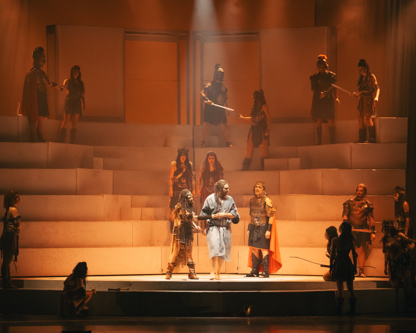 L’originale drammaturgia di Andrea Tomaselli e la regia dinamica di Alessandro Incognito danno vita a una storia di passioni travolgenti. Il conflitto tra le Amazzoni e il Popolo del Mare mette in scena un coacervo di sentimenti contrastanti: odio, sete di potere e un anelito di pace che risuona quanto mai attuale.