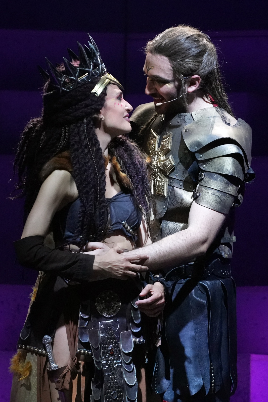 Un musical dall’alto valore artistico, che si avvale della direzione del coro di Lilla Costarelli, dei costumi di Rosy Bellomia e della Bottega Fantastica di Daniele Barbera per la colossale scenografia mobile, diversa per ogni scena che con l’aiuto del videomapping di Andrea Ardizzone ricrea i momenti epici della guerra o dell’amore tra i due protagonisti con estrema veridicità.