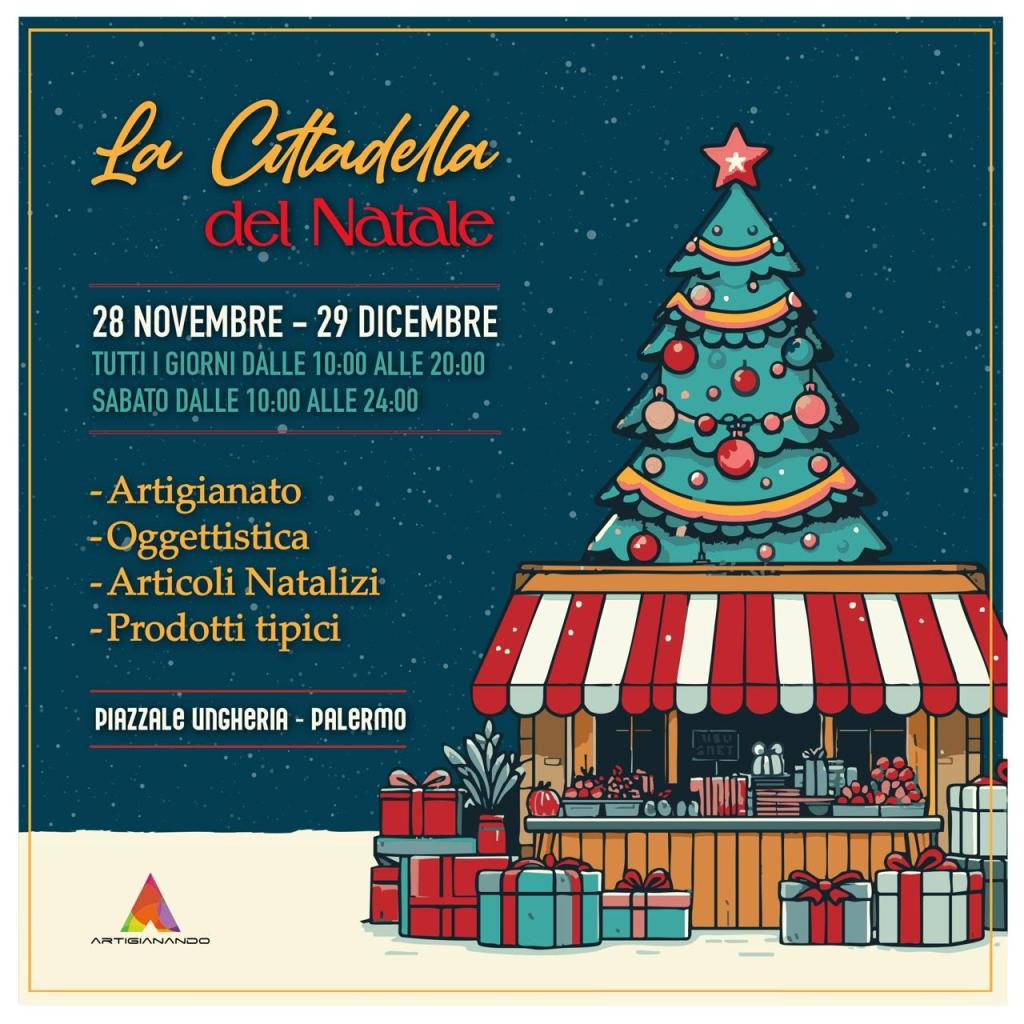 Dopo gli straordinari successi della scorsa edizione, torna a Palermo la fiera natalizia proposta e organizzata dall’Associazione Artigianando in collaborazione con la Events Production e Utopia: la seconda edizione de “La cittadella del Natale”, anche quest’anno, si svolgerà in Piazzale Ungheria da giovedì 28 novembre a domenica 29 dicembre.