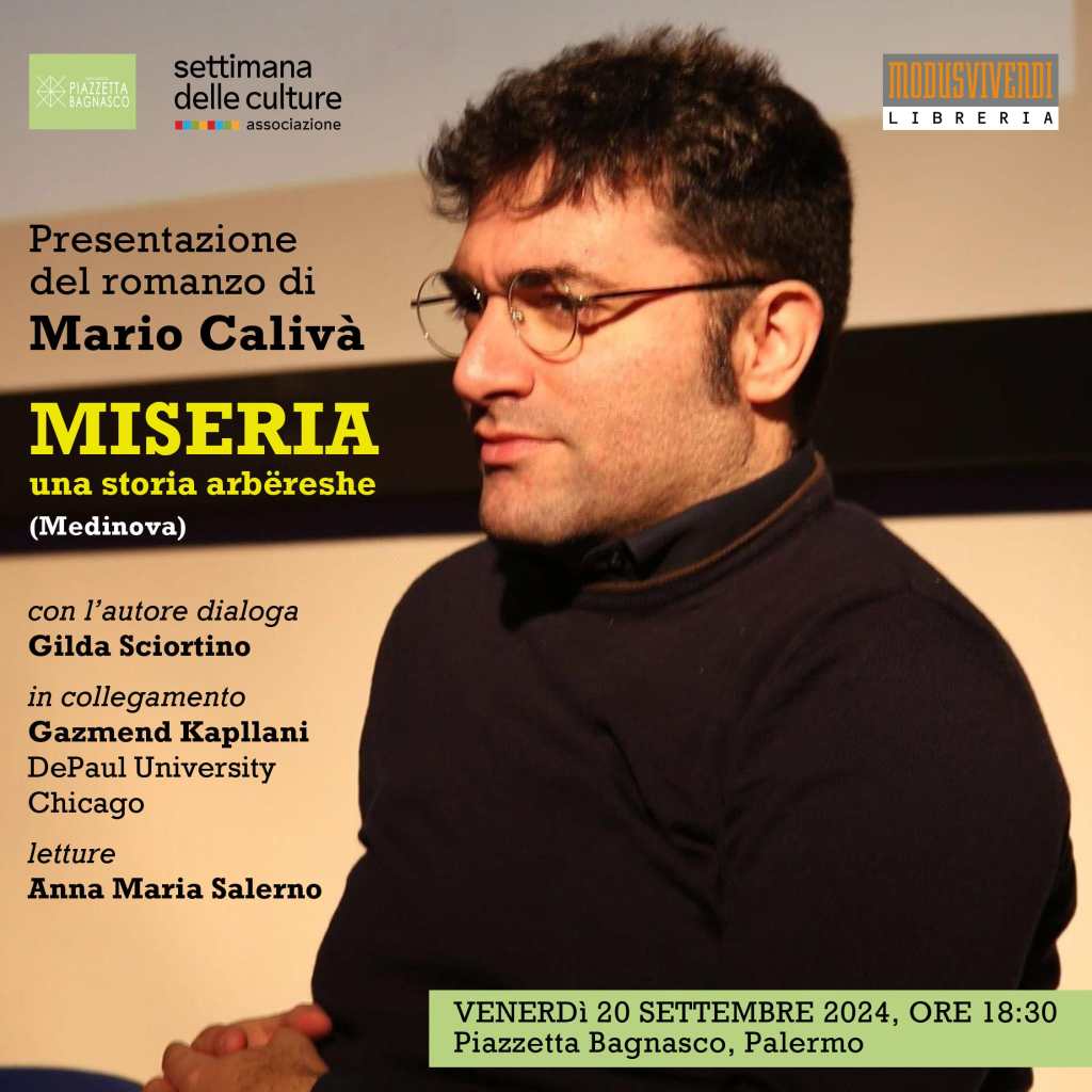 Fantasia e tradizione sapientemente miscelate in un romanzo che, attraverso la storia di una famiglia immaginaria, porta alla luce il quotidiano di una comunità Arbëreshe come quella di Piana degli Albanesi. S’intitola “Miseria. Una storia arbëreshe” (Medinova edizioni) il romanzo di Mario Calivà che sarà presentato alle 18.30 di venerdì 20 settembre in piazzetta Bagnasco. Un evento che sancisce la ripresa delle attività della “Settimana delle Culture”. Sarà, infatti, presente anche il presidente, Giorgio Filippone.