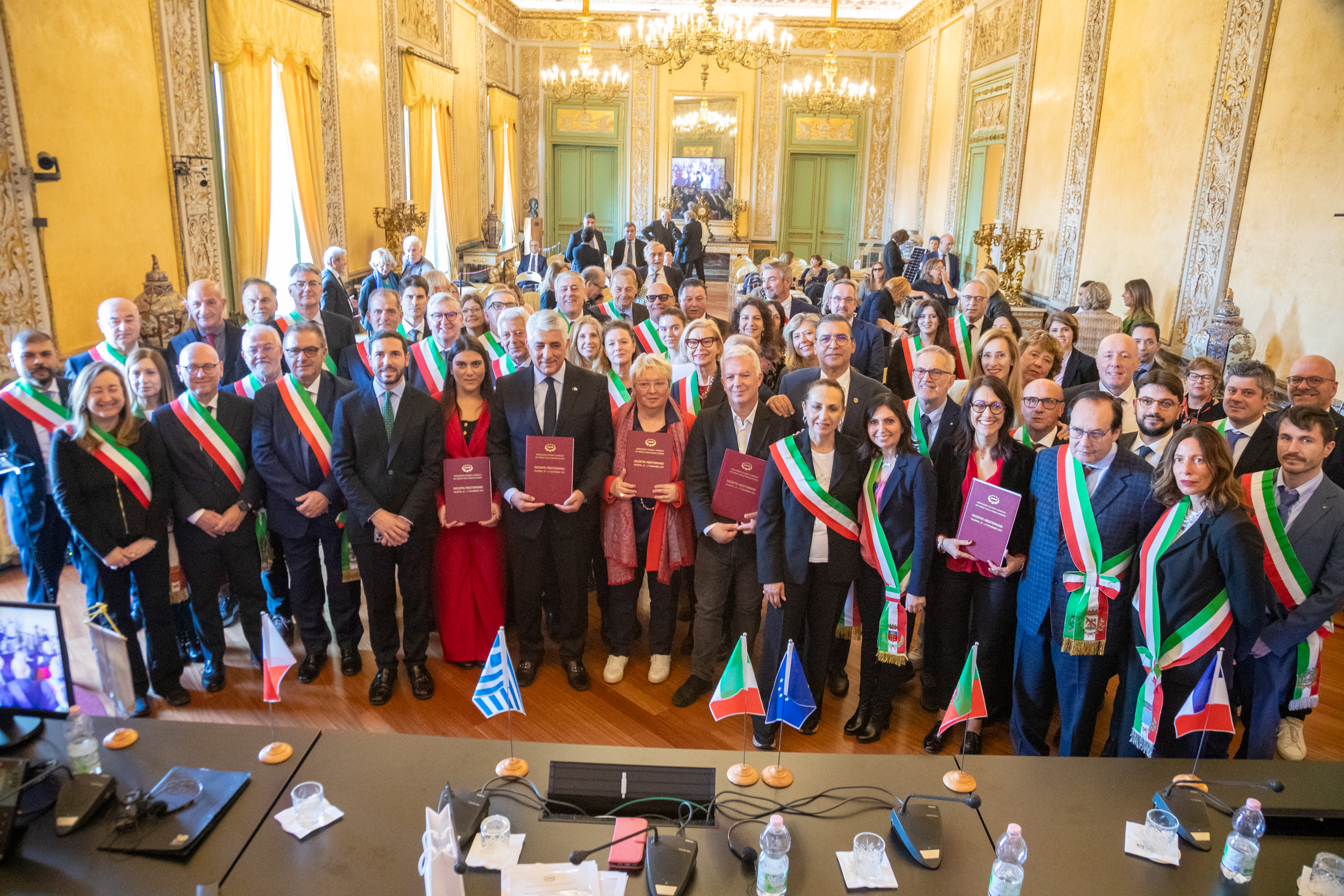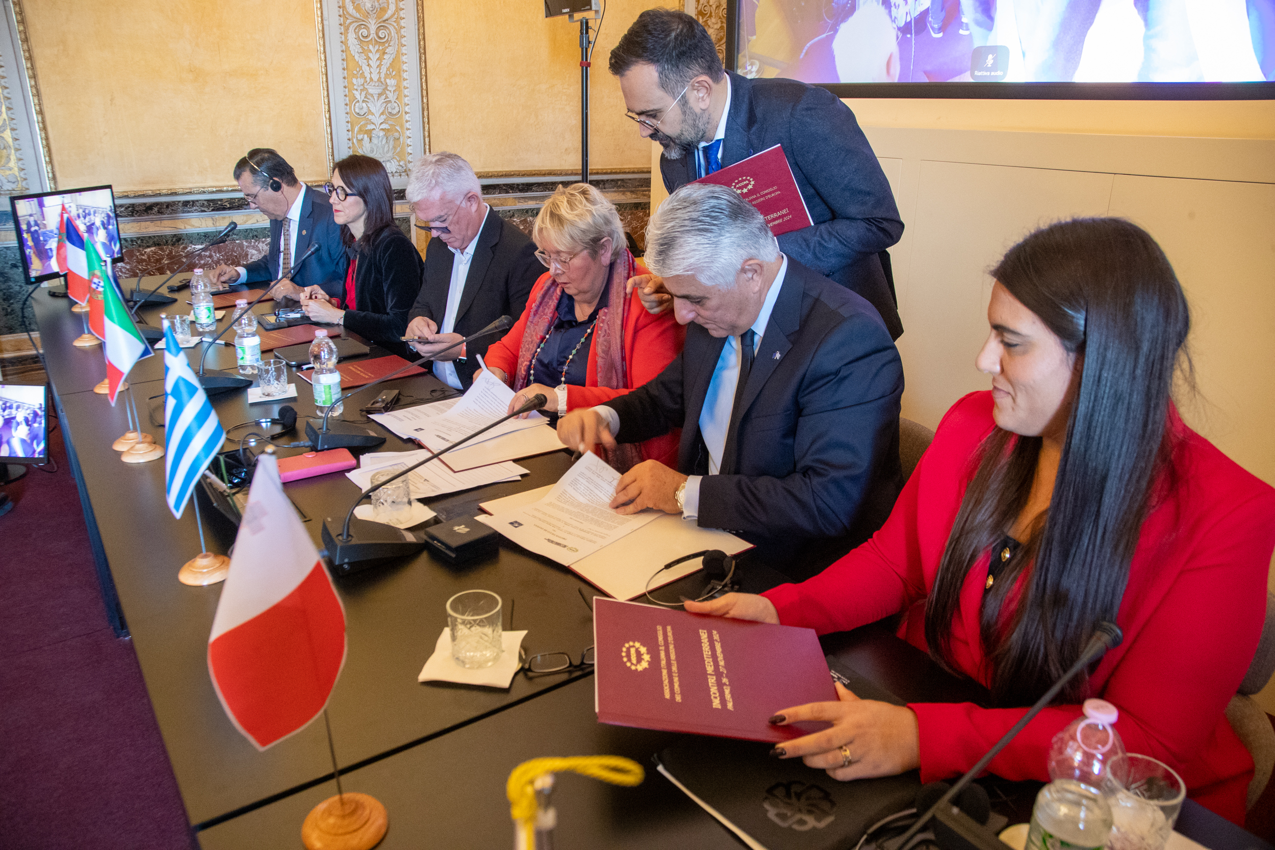 Nella sala Piersanti Mattarella di Palazzo dei Normanni, davanti a decine di sindaci con tanto di fascia tricolore, i paesi (assente giustificato solo la Spagna per la questione dell’alluvione di Valencia), hanno apposto la loro firma su questo protocollo di intesa che si propone 4 obiettivi: il rafforzamento della rappresentanza e della tutela delle autonomie locali dei paesi coinvolti per migliorare la capacità delle autorità locali di rappresentare i propri interessi sia a livello nazionale che internazionale; lo scambio di esperienze e buone pratiche tra i vari comuni dei paesi coinvolti; la cooperazione fra i sette paesi su temi come lo sviluppo sostenibile, l’ambiente e la gestione delle risorse. C’è anche un patto siglato ad hoc per le isole del mediterraneo che presentano caratteristiche geografiche, economiche, demografiche e sociali specifiche.