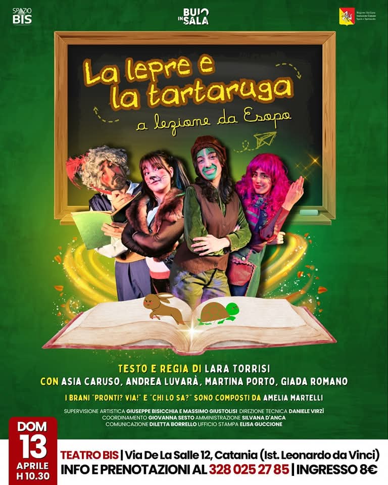 “È uno spettacolo che farà cantare, ridere e sognare- dichiara Lara Torrisi regista dello spettacolo- che racconterà la famosa storia della Lepre e della Tartaruga in una versione tutta nuova unendo il divertimento del teatro interattivo con la profondità delle favole classiche, per far rivivere il grande insegnamento delle favole di Esopo in chiave moderna, con un linguaggio fresco e dinamico capace di stimolare l’immaginazione e il pensiero critico”.
