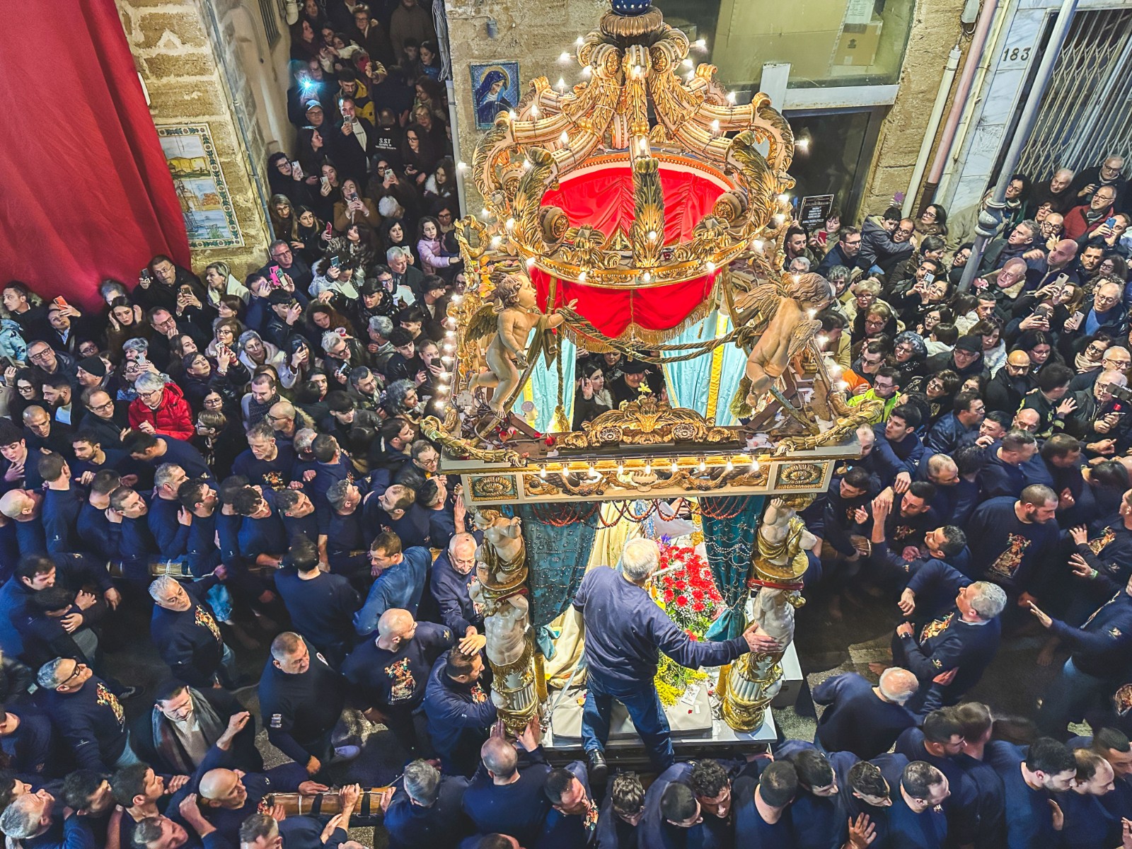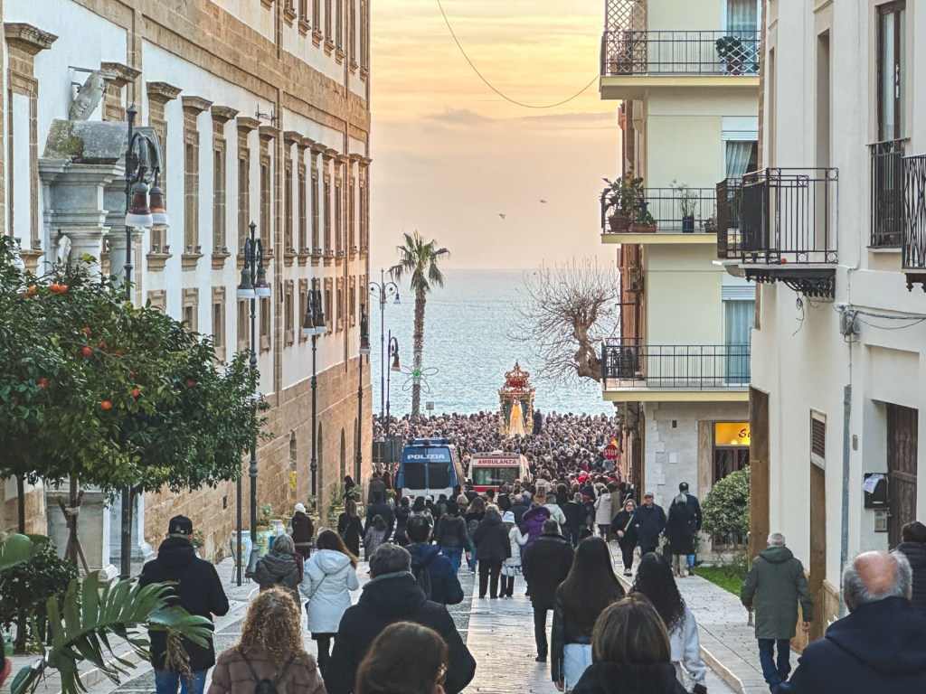 Sciacca ha rinnovato, per la quattrocentesima volta, il solenne Voto di ringraziamento a Maria Santissima del Soccorso, patrona della città, nel giorno simbolo del 2 febbraio. Una processione intensa e profondamente partecipata ha attraversato il centro storico, richiamando migliaia di fedeli provenienti da Sciacca, dai comuni limitrofi e numerosi emigrati rientrati dall’estero, in particolare dagli Stati Uniti, per prendere parte a uno degli appuntamenti più identitari della comunità saccense. Il momento culminante delle celebrazioni si è svolto nel pomeriggio, quando oltre cento pescatori, come vuole la tradizione, hanno portato a spalla e a piedi scalzi la statua in marmo bianco di Carrara di Maria Santissima del Soccorso, opera degli scultori Giuliano Mancino e Bartolomeo Birrittaro, giunta a Sciacca via mare nel 1503.