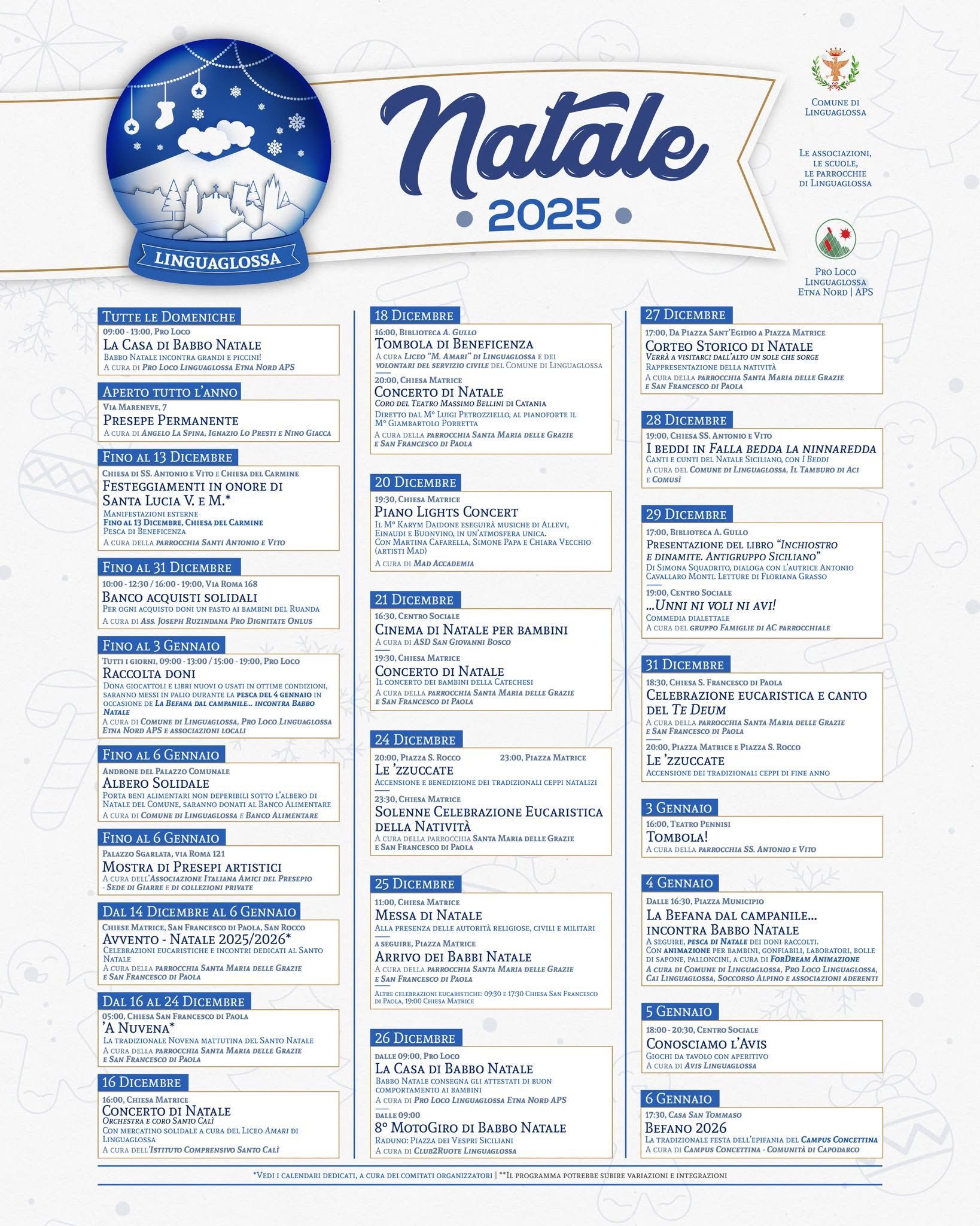 Un Natale di comunità che non lascia indietro nessuno.” Un invito, dunque, a riscoprire la gioia, la meraviglia e il calore autentico delle feste, nella meravigliosa cornice invernale di Linguaglossa.