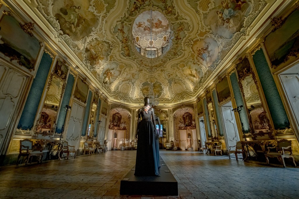 Trenta gioielli unici, per stile, ricchezza e dimensione, hanno catturato lo sguardo dei visitatori presenti al vernissage. Vere e proprie opere d’arte, posizionate al centro della immensa sala dell’antica residenza nobiliare, in fila una dietro l’altra, adagiate su essenziali manichini neri, in una sequenza crescente di luce, bellezza, stupore. “Veri e propri frammenti narrativi” li ha definiti il designer Giovanni Raspini, in cui il decoro e la struttura del gioiello sono in perfetta sintonia stilistica con le pietre utilizzate.