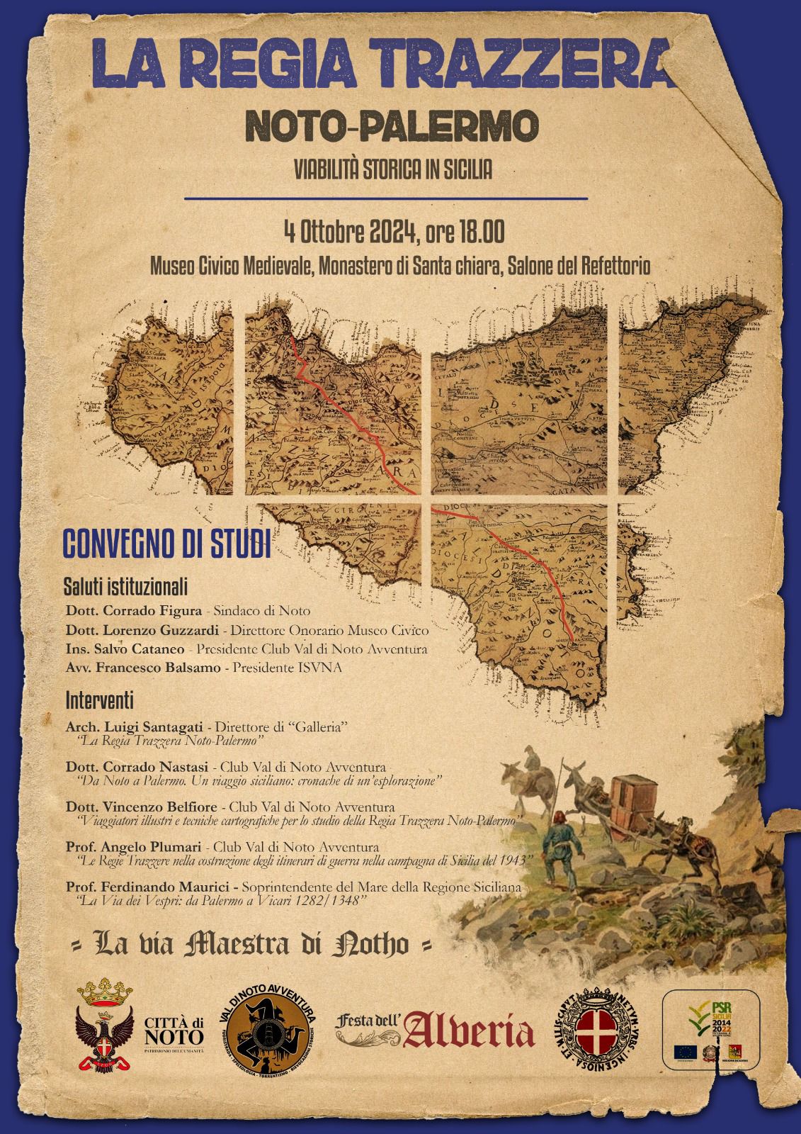 Venerdì 4 ottobre, alle ore 18:00, al Museo Civico nel Salone del Refettorio dell’ex monastero di Santa Chiara. Un interessante convegno su “La regia trazzera Noto Palermo”, un’antica viabilità che, sin dal medioevo, ha collegato la capitale Palermo con il suo capoluogo più remoto: Noto.