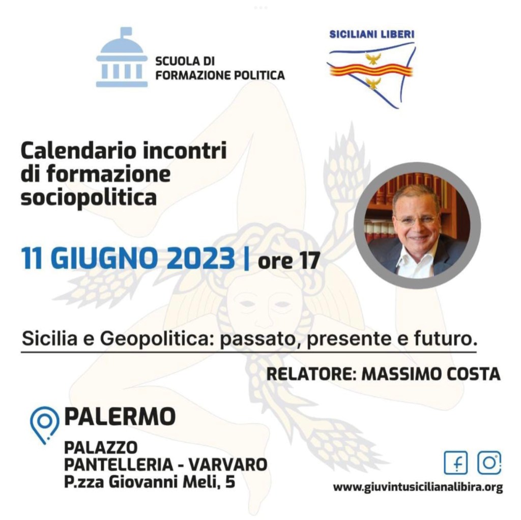 L’11 giugno 2023 alle ore 17:00 si terrà il secondo appuntamento della Scuola di Formazione Politica di Siciliani Liberi, a cura di Giuvintú Siciliana Lìbira.