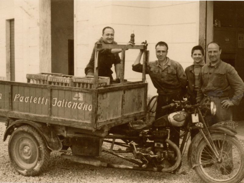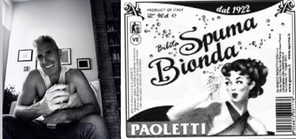 La spuma nasce nel 1922 ad opera di Enrico Paoletti, messo comunale del comune di Folignano, nonché oste che, per risolvere il problema delle continue mancate forniture di gazzosa, decide di mettersi in proprio, creando la sua produzione di bibite con le bollicine, tra cui la stessa gazzosa e una novità, la spuma bionda, dal sapore piacevolmente dolciastro, realizzata con succhi profumati che arrivavano direttamente in botti dalla Sicilia. Nel giro di tre anni i prodotti iniziano a ottenere un discreto successo, così da vincere nel 1925 la Medaglia d’Oro e la Gran Palma d’Onore all’Esposizione Internazionale di Bruxelles. Enrico muore per una caduta da cavallo nel 1927, ma i figli continuano a portare avanti la produzione, meccanizzandola, tanto che negli anni ‘50 il brand ottiene il suo posto al sole. A rendere particolarmente riconoscibili le bottiglie in vetro è l’etichetta, dov’è rappresentata una ragazza in stile pin-up, dal nome di Tina Frizzante, detta FrizzanTina, che ancora adesso è il simbolo in chiave rétro di questa spuma.