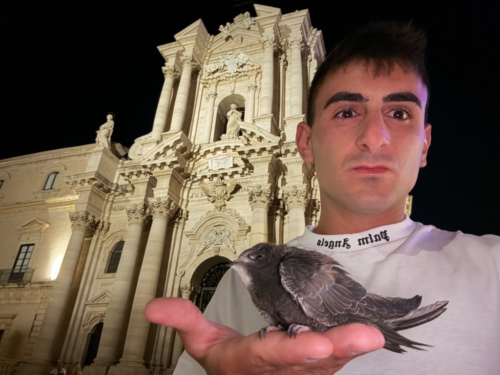 Durante una passeggiata serale a Siracusa, in piazza Duomo, nel centro storico di Ortigia, l’ambientalista Sebastian Colnaghi ha soccorso un piccolo di Rondone Eurasiatico (Apus apus è il suo nome scientifico). Mentre camminava nella vivace piazza, Colnaghi ha notato un movimento insolito: un giovane Rondone che, nel tentativo di fare le sue prime prove di volo, era atterrato in mezzo alla folla di turisti, rischiando di essere schiacciato.
