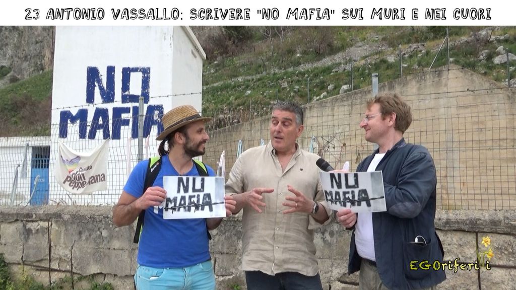 Non è tutto. È anche l’autore della scritta “No Mafia” che domina dall’alto l’autostrada che ha visto morire, oltre a Falcone, Francesca Morvillo e gli agenti della loro scorta.