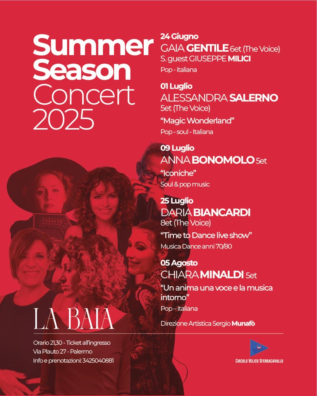 La Baia del Circolo Velico Sferracavallo si prepara ad accogliere il secondo, attesissimo appuntamento della Summer Concert Season, e lo fa con un nome che promette di incantare il pubblico: la cantautrice siciliana Alessandra Salerno.