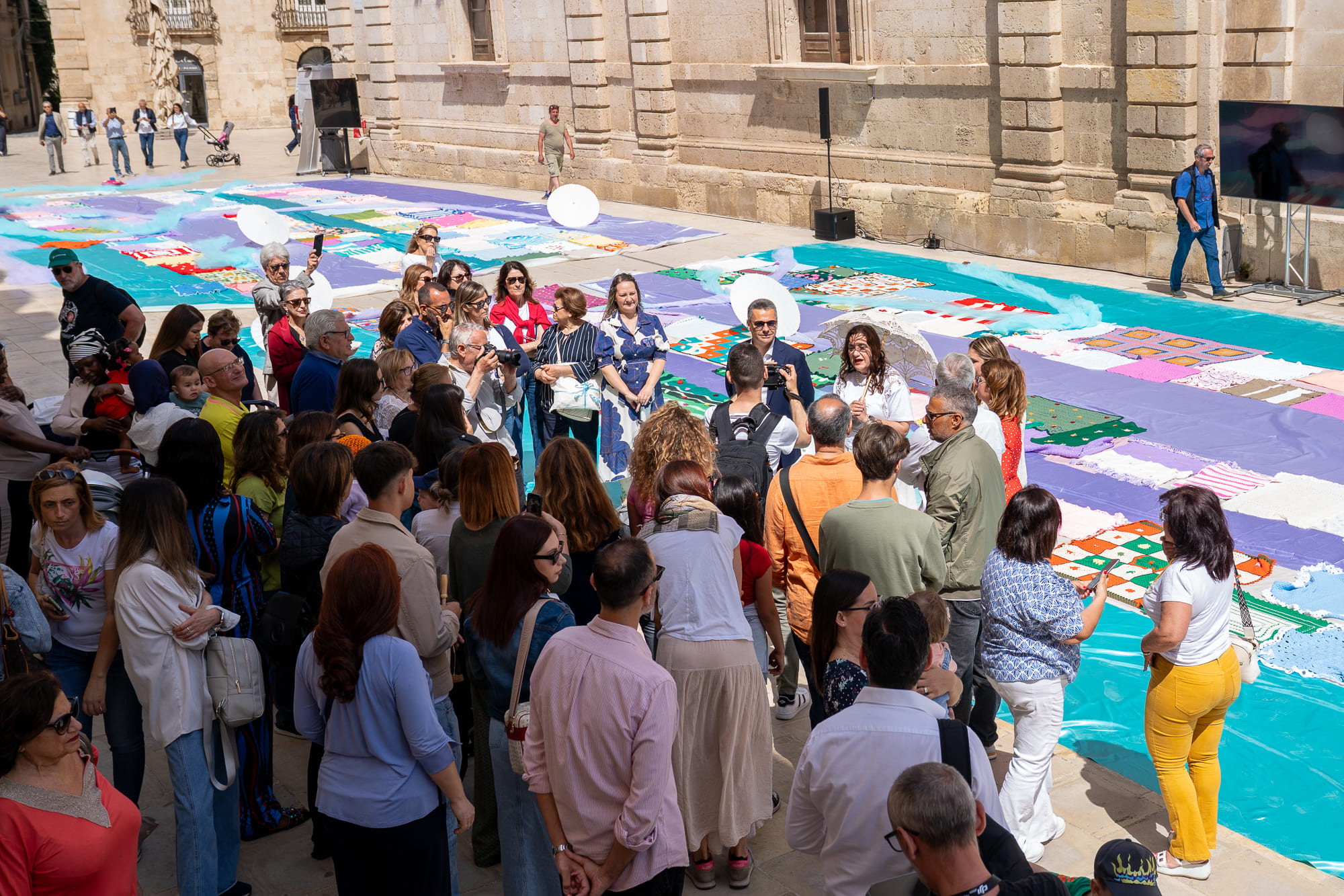 Il momento centrale è stato l’allestimento di un’installazione di Land Art con le copertine realizzate nei laboratori di Lanaterapia. Pezzi unici, lavorati da mani diverse – pazienti, familiari, caregiver – nei reparti dell’Ospedale Cannizzaro di Catania e in molte altre comunità italiane, dalla Valsugana a Nicosia. Un gesto concreto di cura che ha prima trasformato piazza Minerva a Ortigia in una grande distesa colorata e poi sono diventate dono per i bambini del territorio e per alcuni minori non accompagnati. Emozionante la consegna con anche il coinvolgimento della Biblioteca di Belvedere.