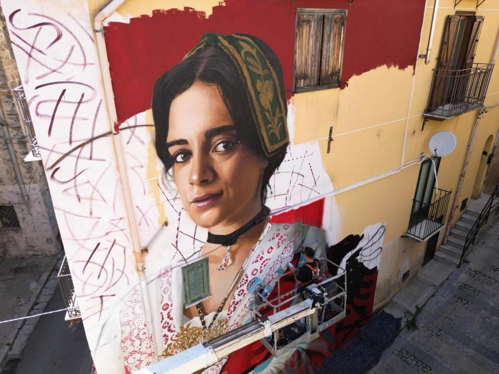 Il murale si affaccia sulla piazza principale con uno sguardo fiero e proiettato verso il domani. L’abito storico tradizionale delle donne Arbëreshe, i colori siciliani e la bandiera albanese si fondono in un unico racconto visivo, messaggio di speranza e continuità culturale.