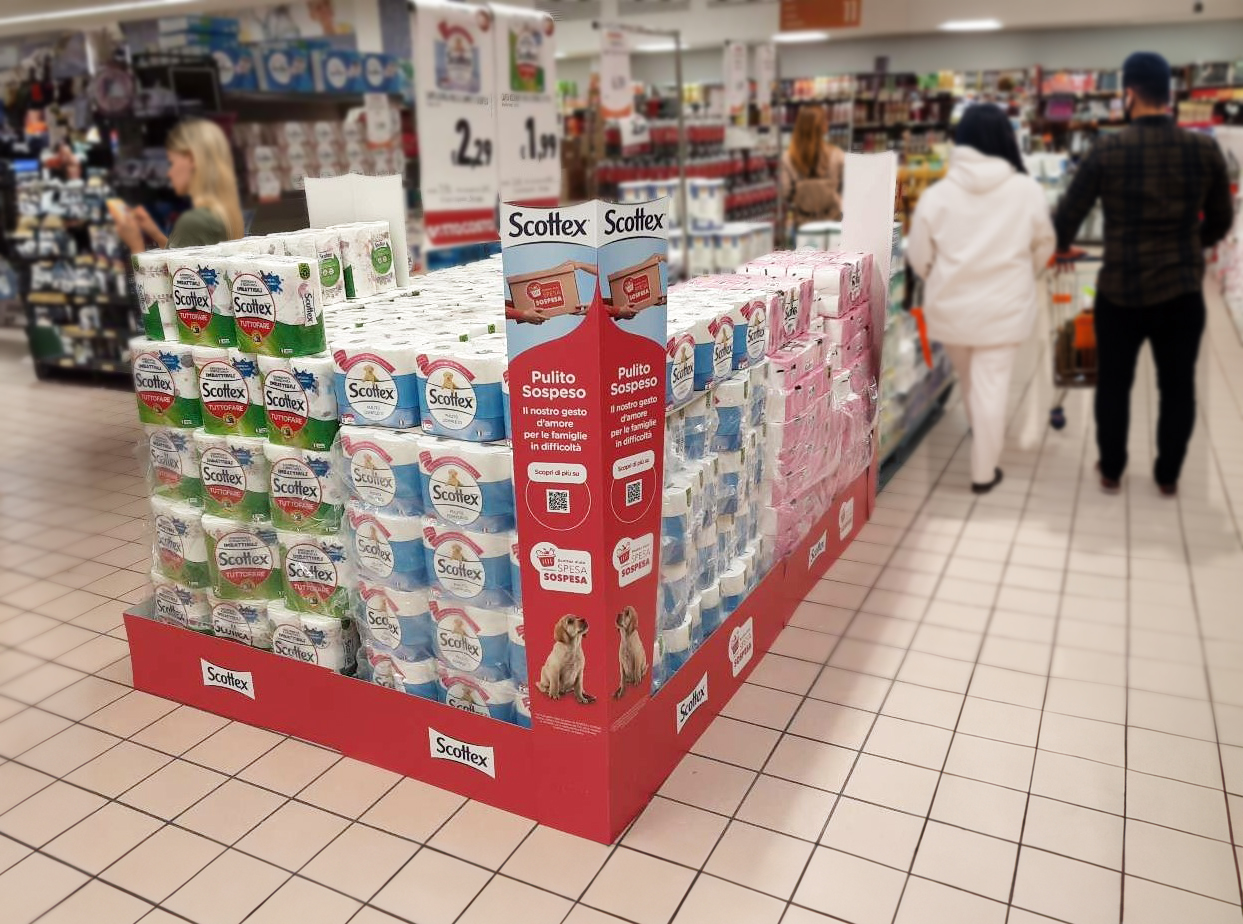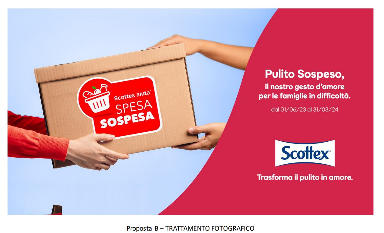 Scottex® in collaborazione con SpesaSospesa.org porterà avanti questo progetto a sostegno delle famiglie italiane fino al 31 marzo 2024, con l’intenzione di estendere la partnership con ulteriori iniziative oltre questa data. Fondata dalla Fondazione Lab00 ETS nel 2020 e in collaborazione con la piattaforma Regusto, SpesaSospesa.org si occupa di raccogliere donazioni e recuperare potenziali sprechi di beni di prima necessità, distribuendoli su tutto il territorio nazionale attraverso organizzazioni non profit, associazioni e volontari.