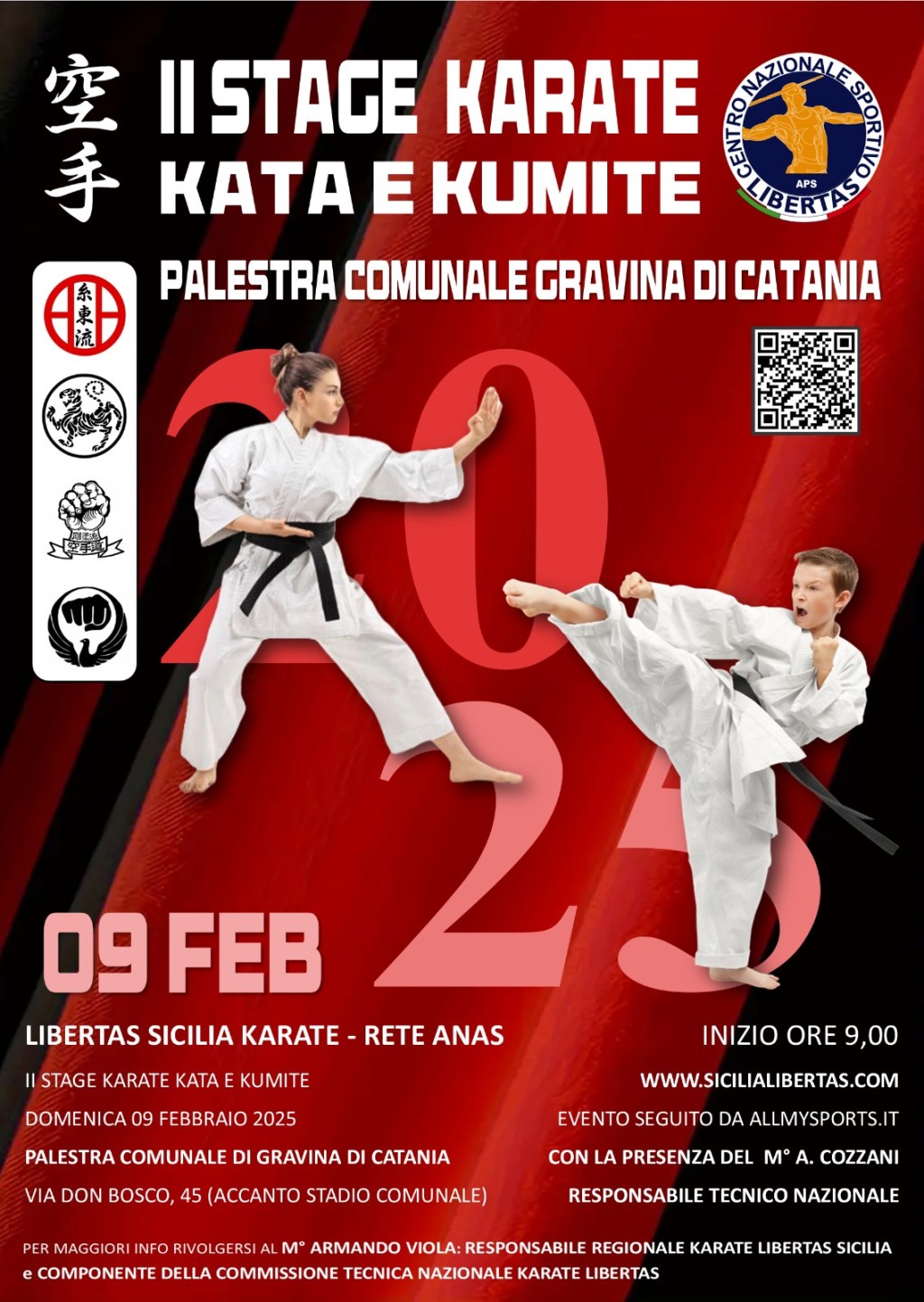 L’evento del settore Libertas Sicilia karate – Rete Anas, al quale prenderanno parte circa 250 karateka, si avvarrà della presenza del Maestro, nonché direttore tecnico nazionale, Alessandro Cozzani, e quella di Massimiliano Giammusso e Filippo Riela, rispettivamente primo cittadino e assessore allo Sport del comune ospitante.