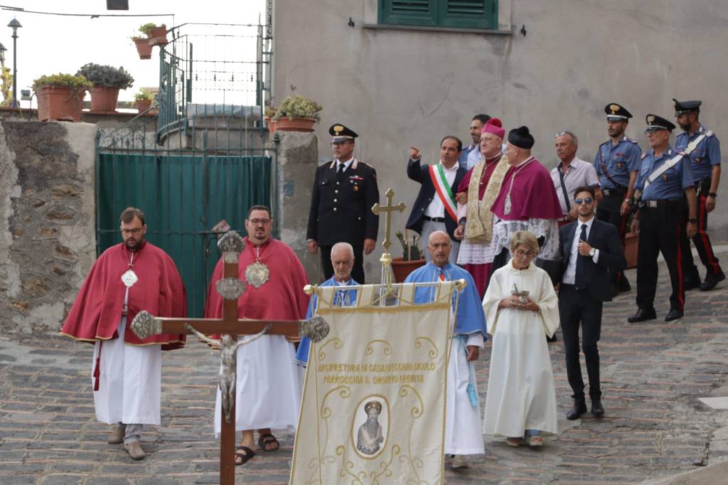 Il momento più atteso di domenica è stato la trionfale uscita del simulacro di Sant’Onofrio, che ha attraversato in processione le vie del paese, accompagnato da preghiere, canti e una partecipazione commossa e sentita dei fedeli.