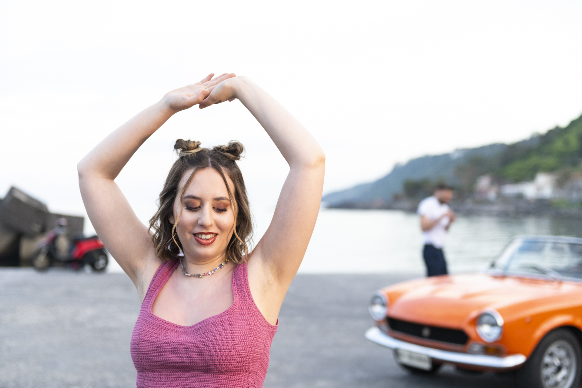 Una radiosa Lucia protagonista del videoclip percorre, su una decappottabile d’epoca di colore arancione, la sua adorata Catania e si diverte a cimentarsi nel ballo insieme ad uno straordinario team di ballerini (Daniele Caruso, Francesco Suriano, Vincenzo Privitera e Simone Coco).