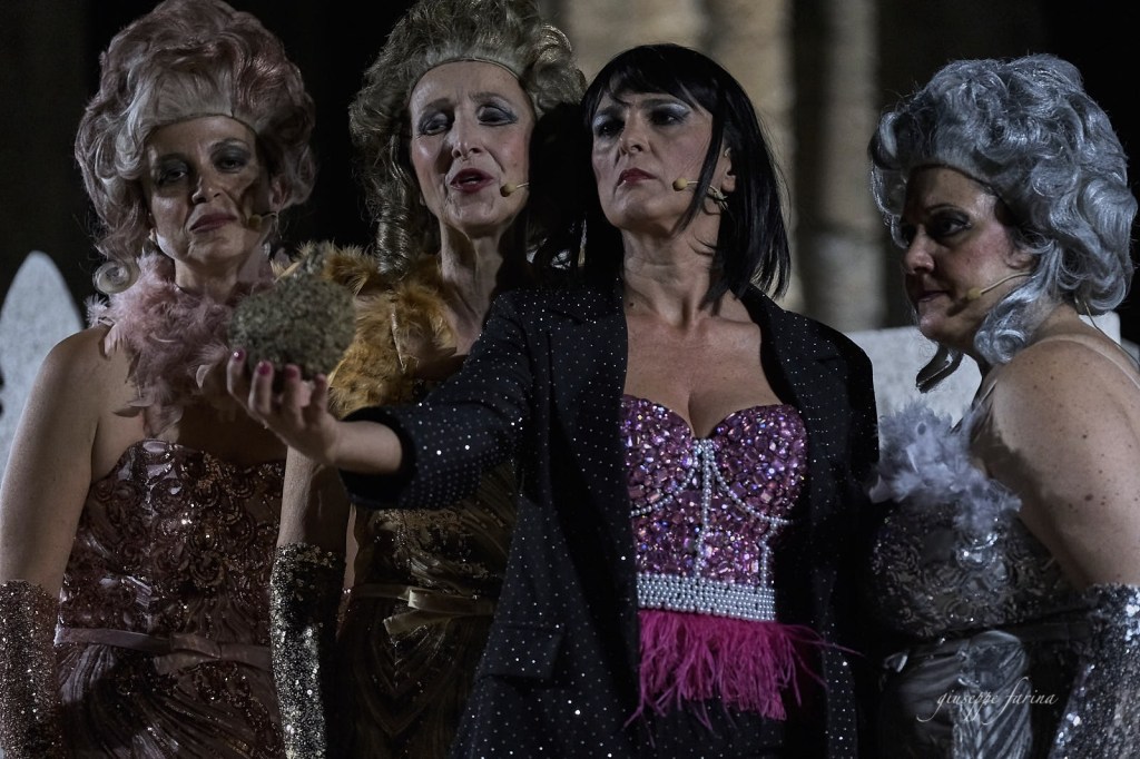 Nell’affascinante visione drammaturgica di Luana Rondinelli, il Mito si fa specchio interiore: Atena, Afrodite ed Era incarnano, infatti, tre archetipi femminili universali (potenza, bellezza, autorità). Il Pomo della discordia è il seme del conflitto, il simbolo del caos dietro l’apparente bellezza. È la scintilla che costringe le protagoniste a guardarsi dentro, ad affrontare il buio dell’inconscio, luogo di paura ma anche di rinascita. Era è una regina sola, tradita e manipolata; Afrodite è bulimica, incapace di accettare il tempo che scorre; Atena, autolesionista, vede la sua logica piegarsi sotto il peso del trauma. È una discesa nell’ombra, necessaria per trasformarsi.