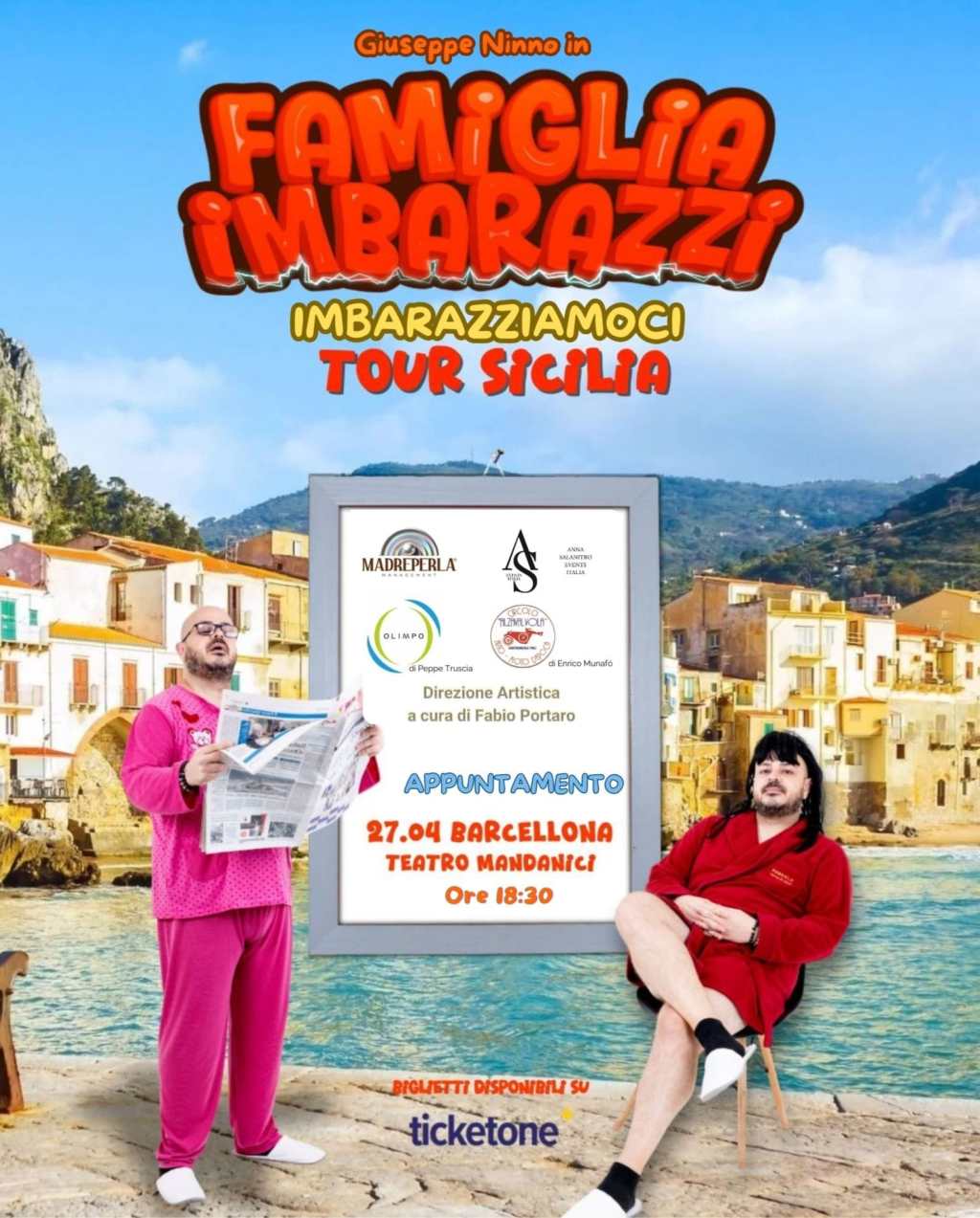 Dopo decine di date sold out in tutta Italia e il successo del film “La maledizione dello zoccolo”, il fenomeno comico Mandrake – al secolo Giuseppe Ninno – arriva al Teatro Mandanici di Barcellona Pozzo di Gotto con lo spettacolo “Imbarazziamoci”, in scena domenica 27 aprile alle ore 18:30. Un appuntamento attesissimo, organizzato da Agenzia Madreperla, costituita da Eventi Olimpo di Peppe Truscia, in collaborazione con il Circolo Alzavalvola di Enrico Munafò e Anna Salanitro Events Italia, con la Direzione Artistica di Fabio Portaro.