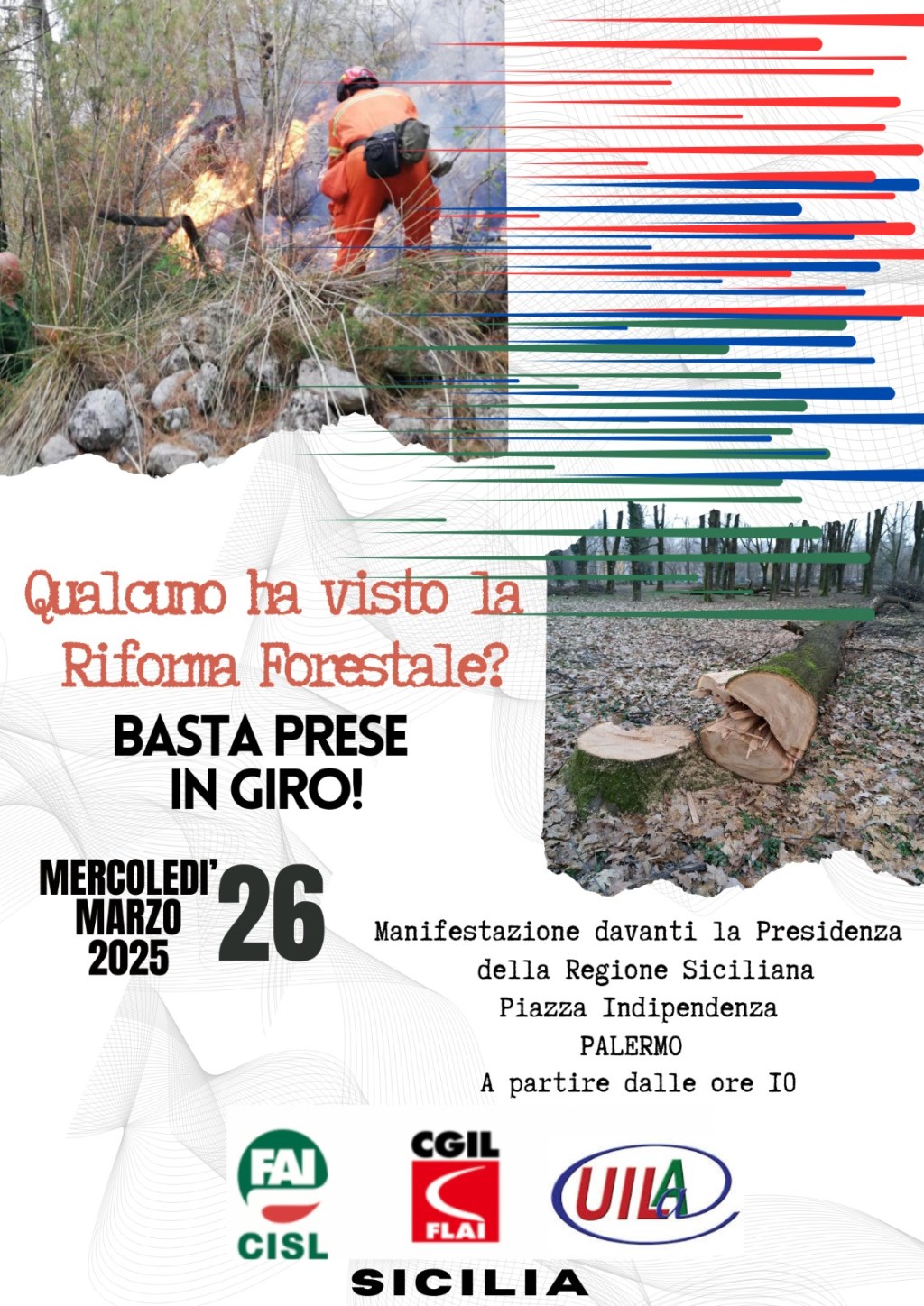 Palermo 25 marzo 2025 – “Gli operai forestali sono costretti a tornare in piazza, dopo la manifestazione di protesta del 22 gennaio, perché dalla politica continuano a non arrivare risposte per salvare l’ambiente e il lavoro”.