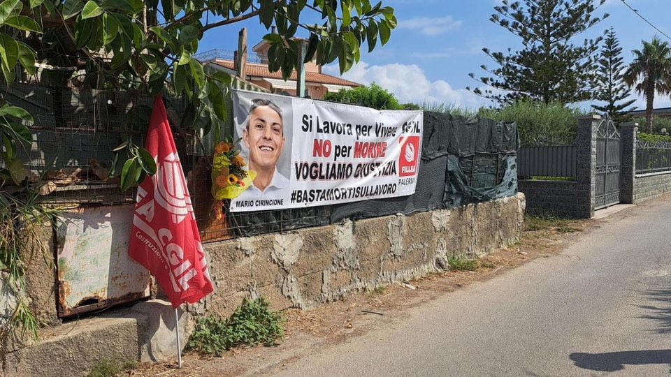 Palermo 3 dicembre 2025 – Nel luogo in cui è morto il 21 febbraio del 2024 l’operaio edile Mario Cirincione, qualcuno ha tolto e portato via il ritratto e lo striscione con la sua immagine e la scritta #bastamortisullavoro messi dai familiari e dalla Fillea Cgil, in occasione del primo anniversario,