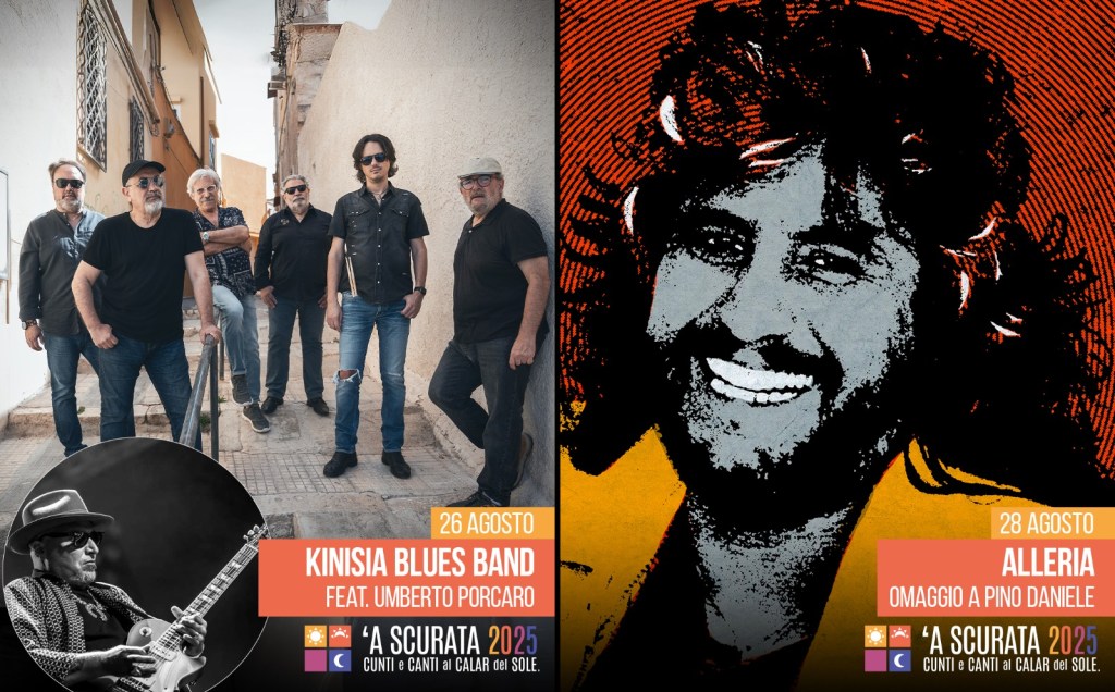 Martedì 26 agosto alle 19,30 il teatro a mare “Pellegrino 1880” accoglierà il concerto dei “Kinisia Blues Band” che quest’anno si arricchisce della presenza di Umberto Porcaro, chitarrista di fama internazionale. Viaggio attraverso i quattro album dei KBB che rende omaggio a grandi icone come Robert Johnson, B.B. King, Eric Clapton, Roberto Ciotti. Giovedì 28 alla stessa ora sarà la volta di “Alleria – omaggio a Pino Daniele”, a dieci anni dalla sua scomparsa, Aldo Bertolino ha voluto rendere omaggio all’arte, alla voce e al cuore dell’artista tra note blues, jazz, funk e le profonde radici della tradizione partenopea