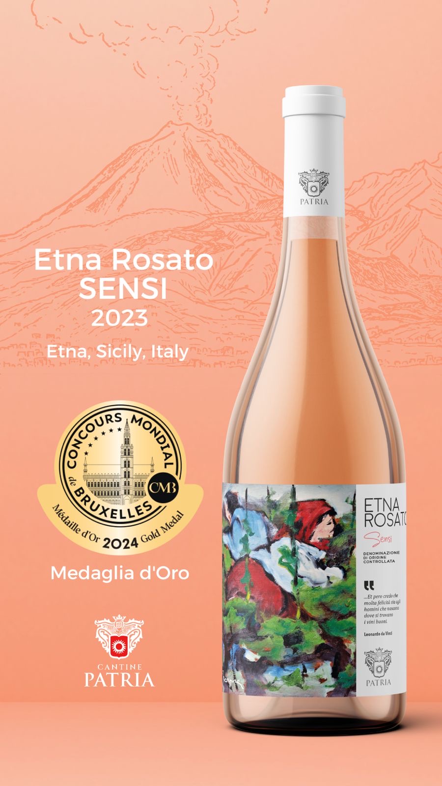 L’Etna Rosato ‘Sensi’, con la sua etichetta d’arte dell’artista etneo Salvatore Incorpora, è un vino rosè che nasce sul versante Nord dell’Etna, in un terroir eccezionale per l’agricoltura vitivinicola, a 700 metri di altitudine, in Contrada Pontale Palino, a Rovittello, prodotto al 100% con uva Nerello Mascalese. Dopo aver svolto una fermentazione alcolica in assenza di vinacce con lieviti selezionati in tini di acciaio per circa 15 giorni ad una temperatura controllata di 16/18 °C per circa 15 giorni, affina in silos di acciaio inox per 1 mese ed in bottiglia per almeno 2 mesi. Il vino, un rosa cerasuolo trasparente e brillante, si dimostra intenso al naso, con note floreali tipiche del territorio, come la ginestra ed il gelsomino, e note agrumate, con rimandi di spezie dolci. Al palato emerge con grande eleganza e freschezza, sapido e morbido. Un vino che trasmette la fierezza di un territorio unico, dove storia e bellezza si incontrano. “Siamo davvero molto orgogliosi di questo riconoscimento – dichiara Francesco Di Miceli, titolare di Cantine Patria – Avere ottenuto una medaglia d’oro ad uno dei concorsi più prestigiosi al mondo è per noi motivo di grande gioia. Il nostro ‘Sensi’ è un vino cento per cento Nerello mascalese, prodotto da una vigna giovane. Un vino che si può bere tutti i giorni senza stancarsi mai. Questo premio celebra non solo l’eccellenza del nostro vino, ma anche l’impegno costante insieme al nostro team nella ricerca della qualità e nel rispetto del territorio. È un progetto che parte da lontano e in cui abbiamo sempre creduto conoscendo le straordinarie potenzialità delle uve del Nerello mascalese per la produzione dei vini rosati. Io voglio però – conclude Di Miceli – fare un plauso a tutti i produttori etnei e agli eccezionali vini che provengono da questo meraviglioso territorio”.