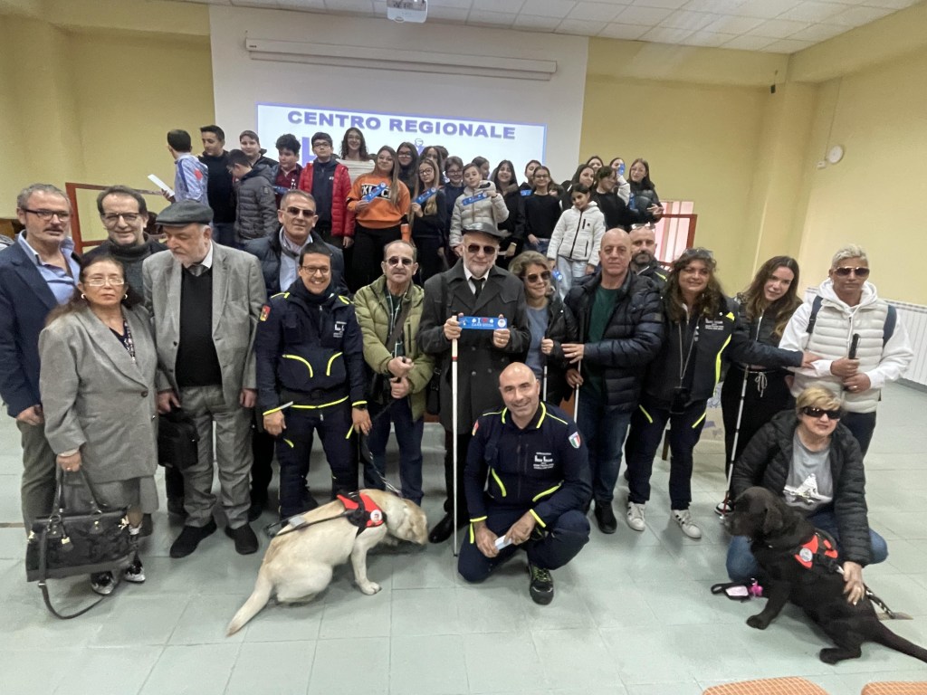 Una giornata di riflessione e sensibilizzazione per i ragazzi della scuola media Catàlfamo di Messina che hanno partecipato giovedì 11 dicembre alla cerimonia di consegna di quattro cani guida e nove bastoni bianchi a persone non vedenti da parte del centro regionale Helen Keller.