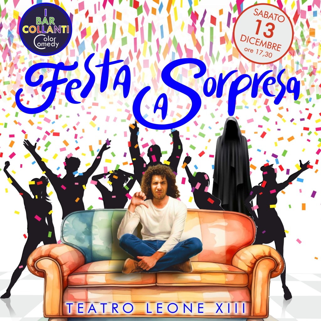 “Festa a sorpresa”, la commedia inedita che Sasà Neri ha scritto per i Barcollanti, sarà a debutto sabato 13 dicembre alle ore 17:30 al Teatro Leone XIII di Messina, via Elenuccia 15 (per info e prenotazioni tel. 3409391685, tel. 3288237597).