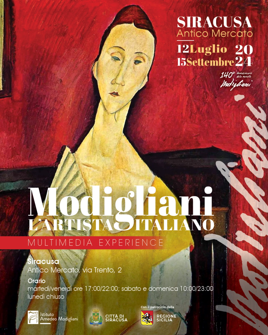 Per due mesi, la città di Siracusa sarà l’unica tappa italiana di un importante evento artistico: dal 12 luglio al 15 settembre, infatti, nella suggestiva cornice dell’Antico Mercato, prestigioso edificio situato nel cuore dell’isola di Ortigia, centro storico di Siracusa, si terrà la mostra “Modigliani l’artista italiano – Multimedia Experience”. Un grande evento, un’esperienza immersiva ed emozionante dentro la vita e le opere di uno dei più grandi artisti del Novecento: Amedeo Modigliani. L’esposizione, curata e allestita dall’Istituto Amedeo Modigliani, con il sostegno e la collaborazione dell’assessorato alla Cultura del Comune di Siracusa e il patrocinio della Regione Sicilia, celebra il 140° anniversario della nascita del grande artista livornese, offrendo ai visitatori un eccezionale percorso che ne racconta la vita, gli amori, la genialità artistica e le opere, utilizzando un innovativo format espositivo che mette insieme l’arte e la tecnologia.