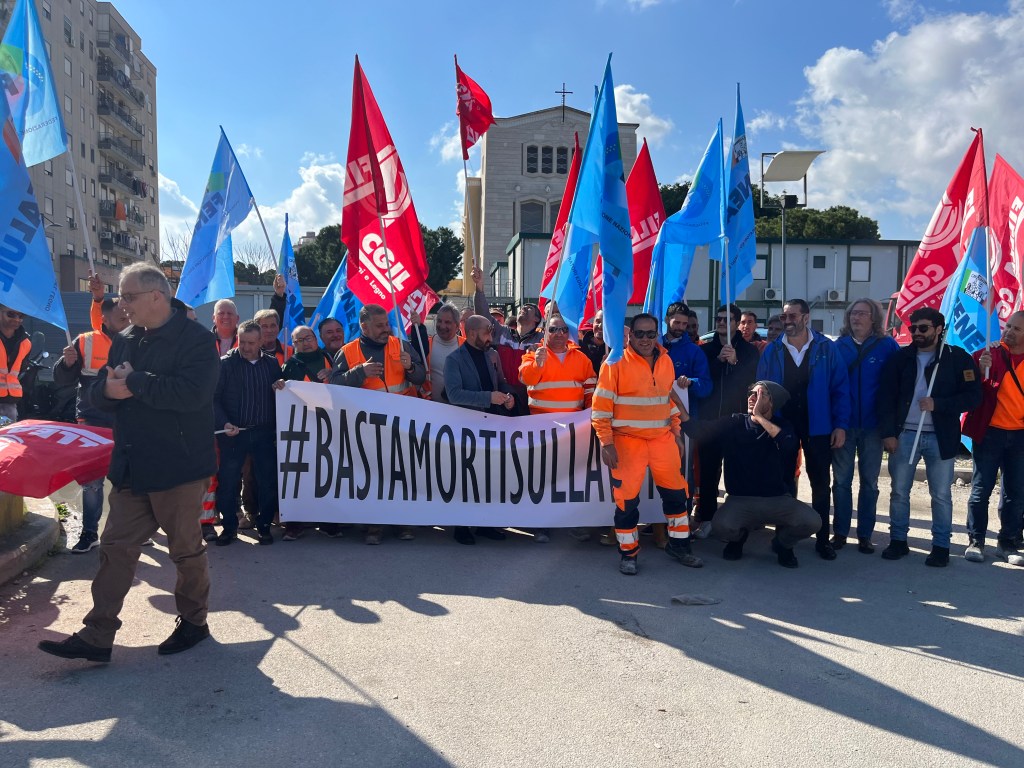 Il bilancio della giornata di sciopero di Cgil e Uil, con le categorie degli edili e metalmeccanici, è stato positivo, con un’adesione del cento per cento nei grandi cantieri. Presidi con la partecipazione degli operai con gli striscioni #bastamortisullavoro si sono svolti al cantiere del Collettore fognario di Palermo, al cantiere dell’Anello Ferroviario in piazzetta della Pace, al cantiere Metro di viale Lazio Palermo, alle Cementerie di Isola delle Femmine, al cantiere del raddoppio ferroviario Ogliastrillo-Castelbuono al cantiere Rimed, centro biotecnologie di Carini. Al cantiere di piazzetta della Pace, hanno partecipato al sit-in e all’assemblea di Fillea e Feneal anche i segretari confederali.